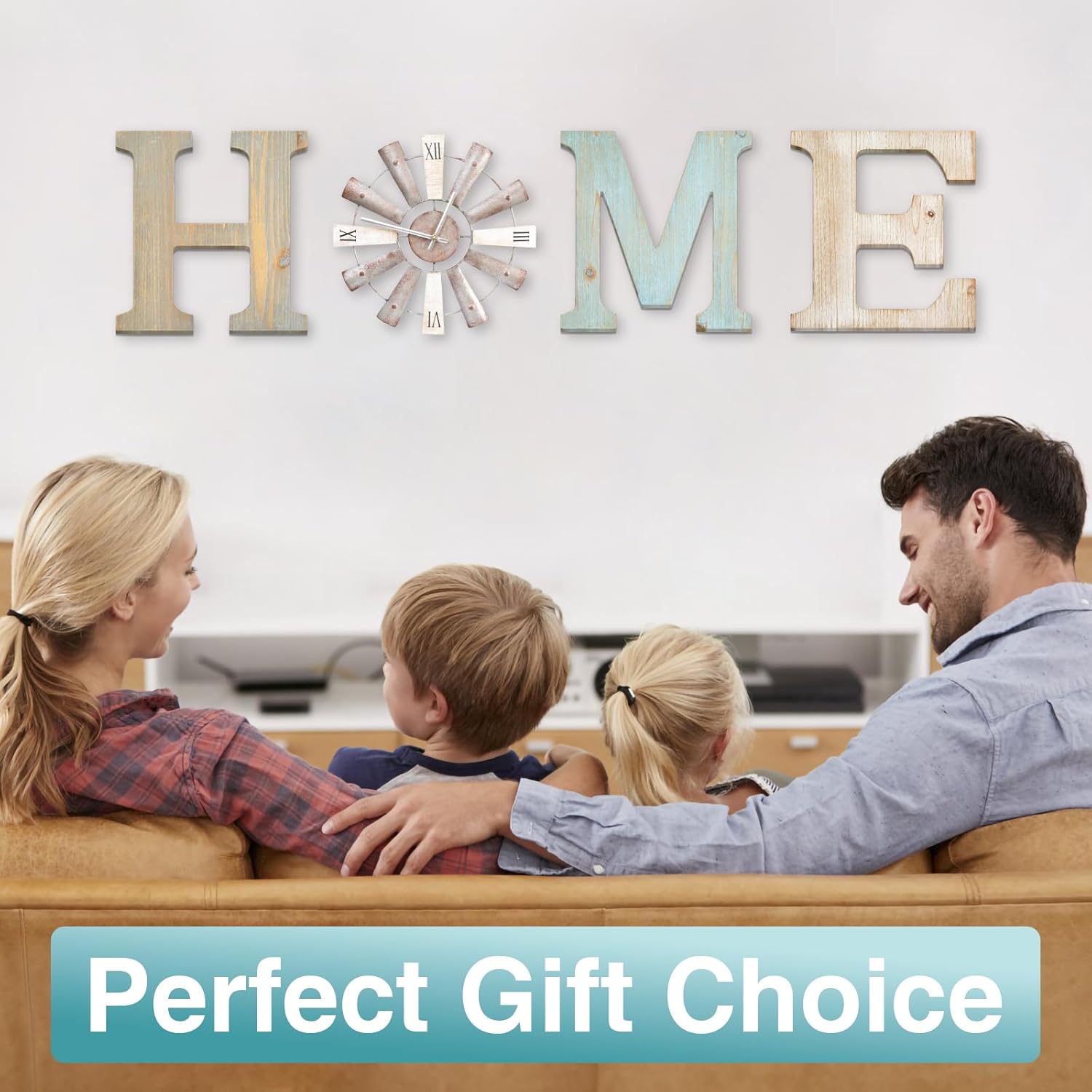 ZAZIWZ Farmhouse Home Signs with Windmill Clock Wall Decor Rustic Home Letters Wall Art for Living Room Kitchen Entryway Dining Room Bedroom (mix color)
