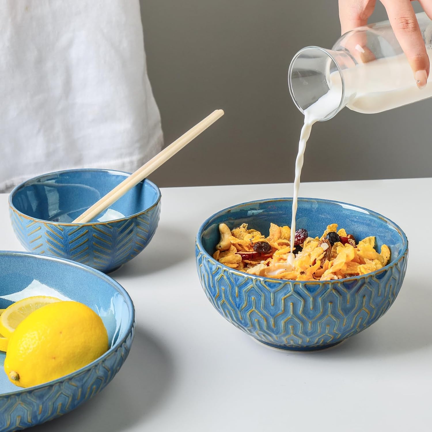 Sureasy Ceramic Cereal Bowls Set of 4-25 oz Blue Soup Bowls for Kitchen, Perfect for Soup, Pasta, and Salad, Microwave & Dishwasher Safe