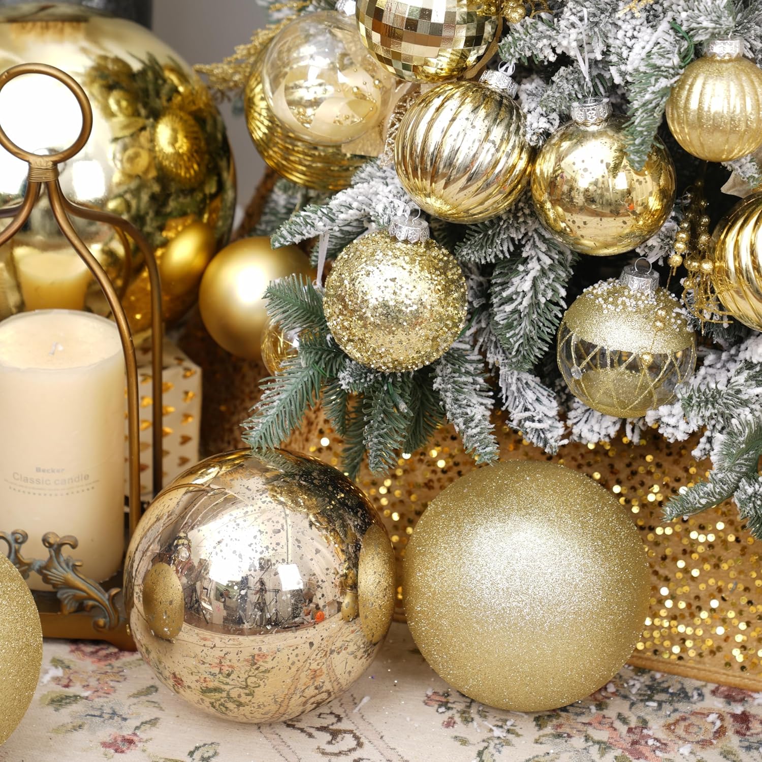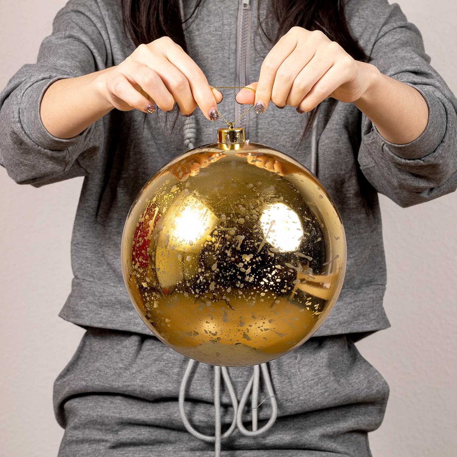 XmasExp Large Christmas Ball Ornaments,1pcs Gold Giant Shatterproof Plastic Hanging Mercury Xmas Ball Decorations Christmas Tree Ornaments (Gold, 8")