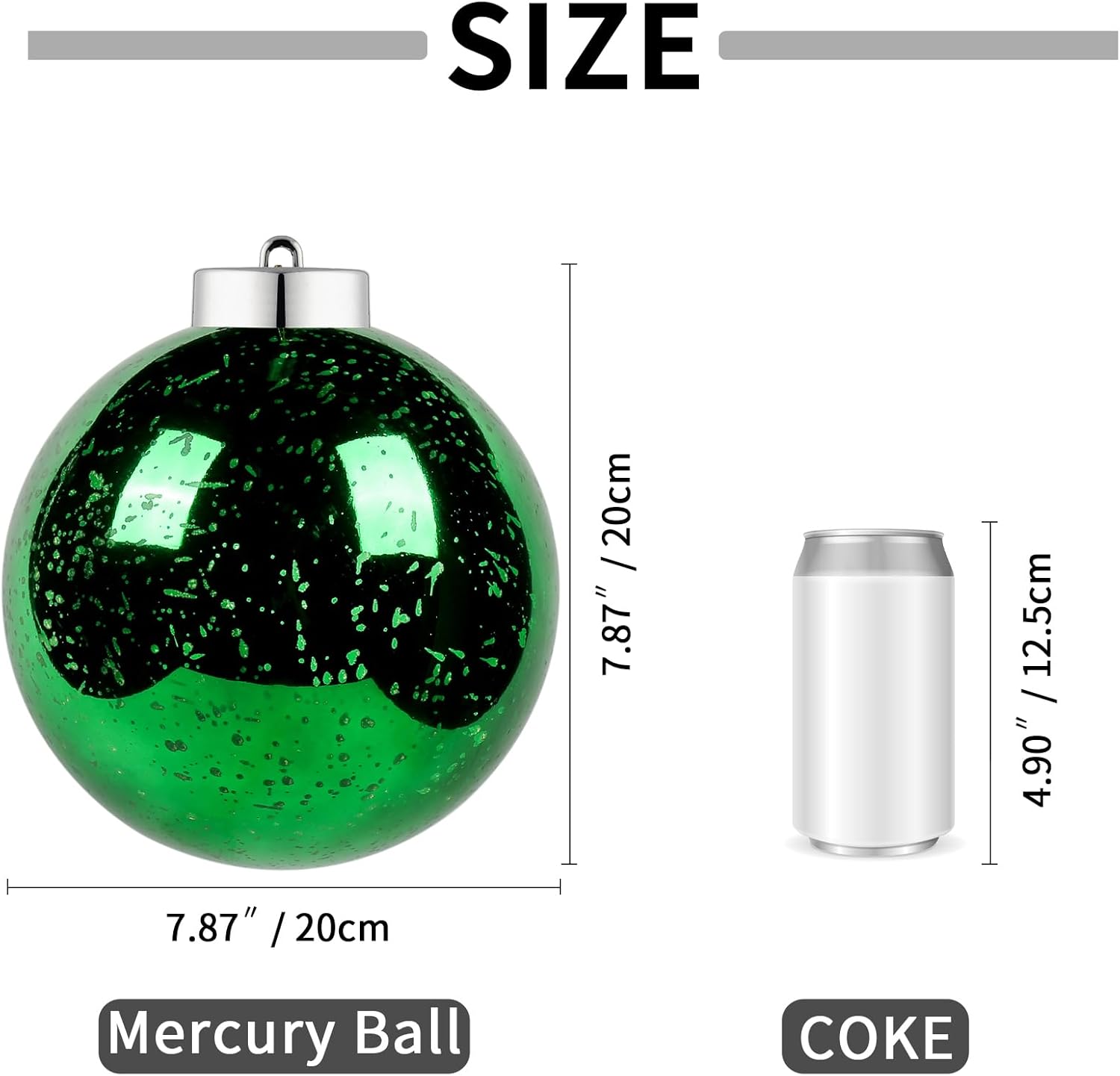 XmasExp Large Christmas Ball Ornaments,1pcs Green Giant Shatterproof Plastic Hanging Mercury Xmas Ball Decorations Christmas Tree Ornaments (Green, 8")