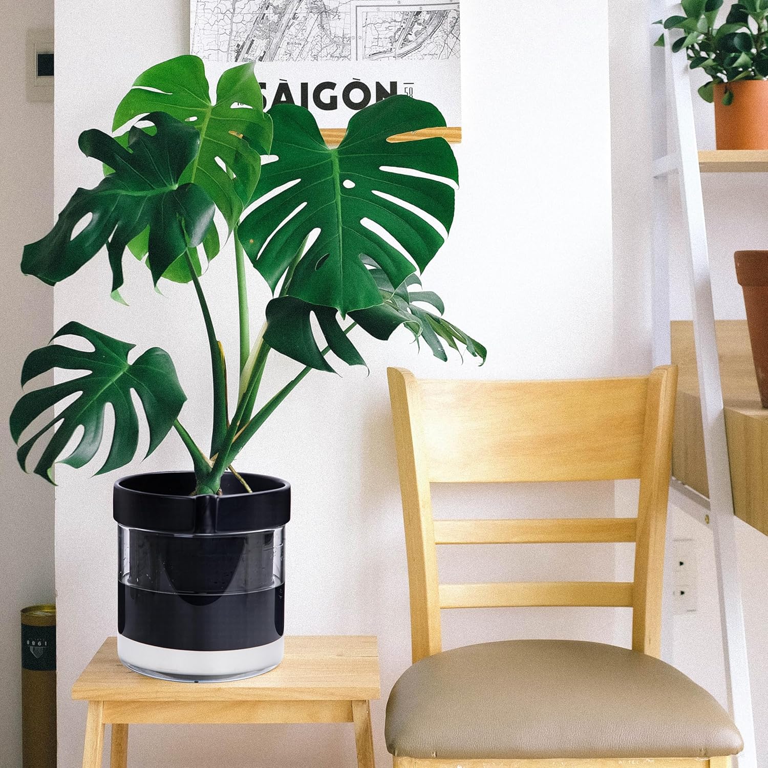 - Self-Watering System: The bottom of the terracotta pot is unglazed, so you can fill the glass reservoir with water to ensure plants absorb just the right amount.
