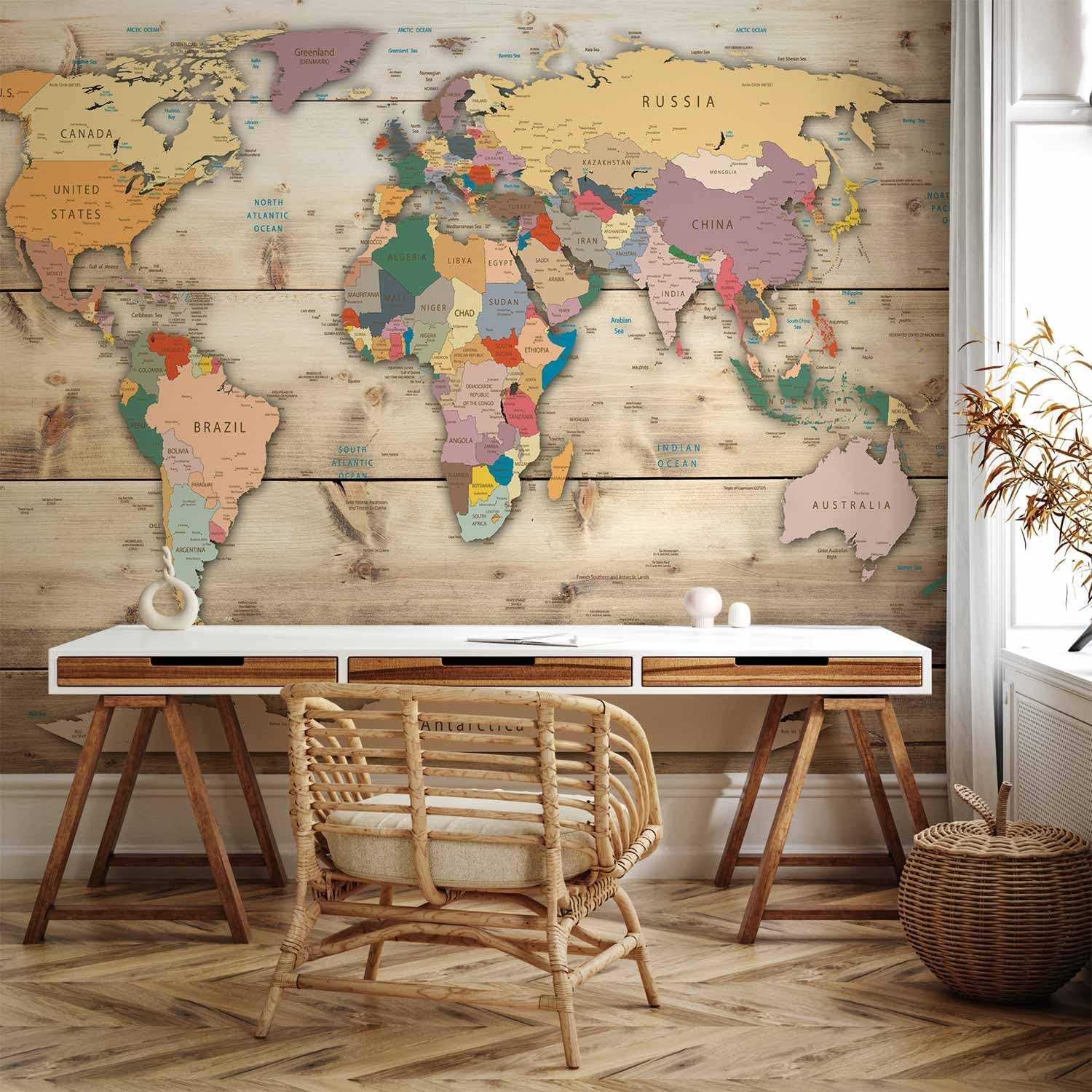 artgeist Premium Wall Mural World Map 177x124 in - XXL Non-Woven Wallpaper Fleece Wall Decor Photo Print Picture Image Design Home Map of The World k-B-0009-a-b
