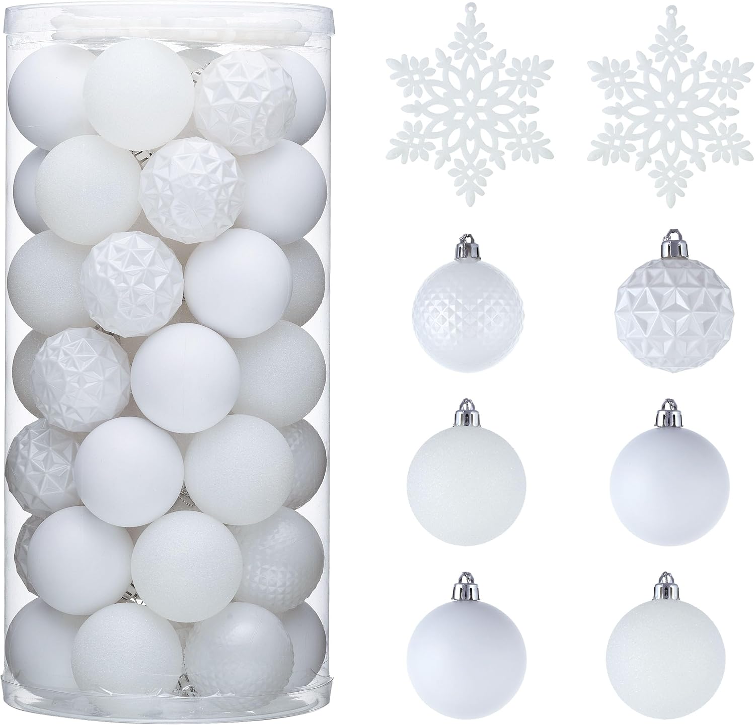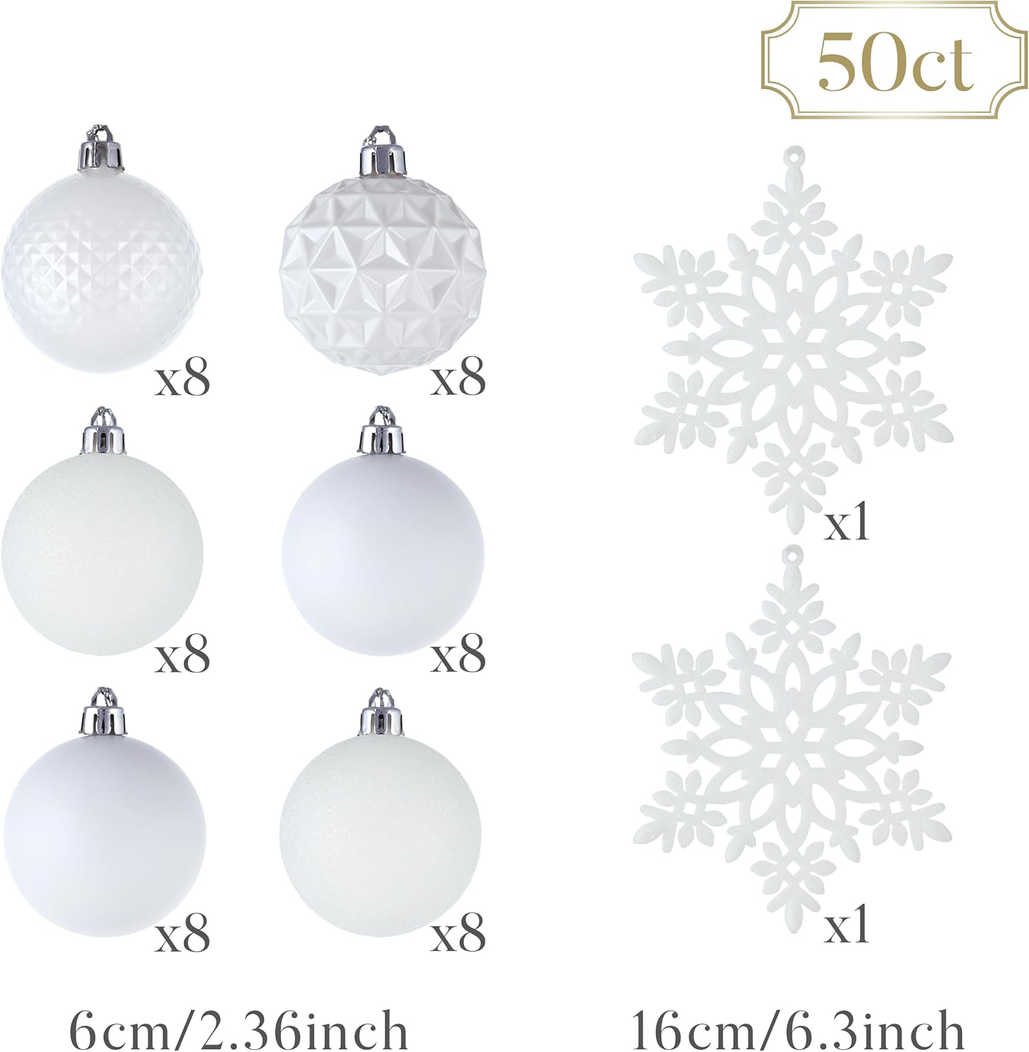 Valery Madelyn Christmas Tree Decorations Ornament Set for Fall Halloween, 50ct 2.36 Inches White Shatterproof Christmas Ball Ornaments Hanging Xmas Holiday Party Decor
