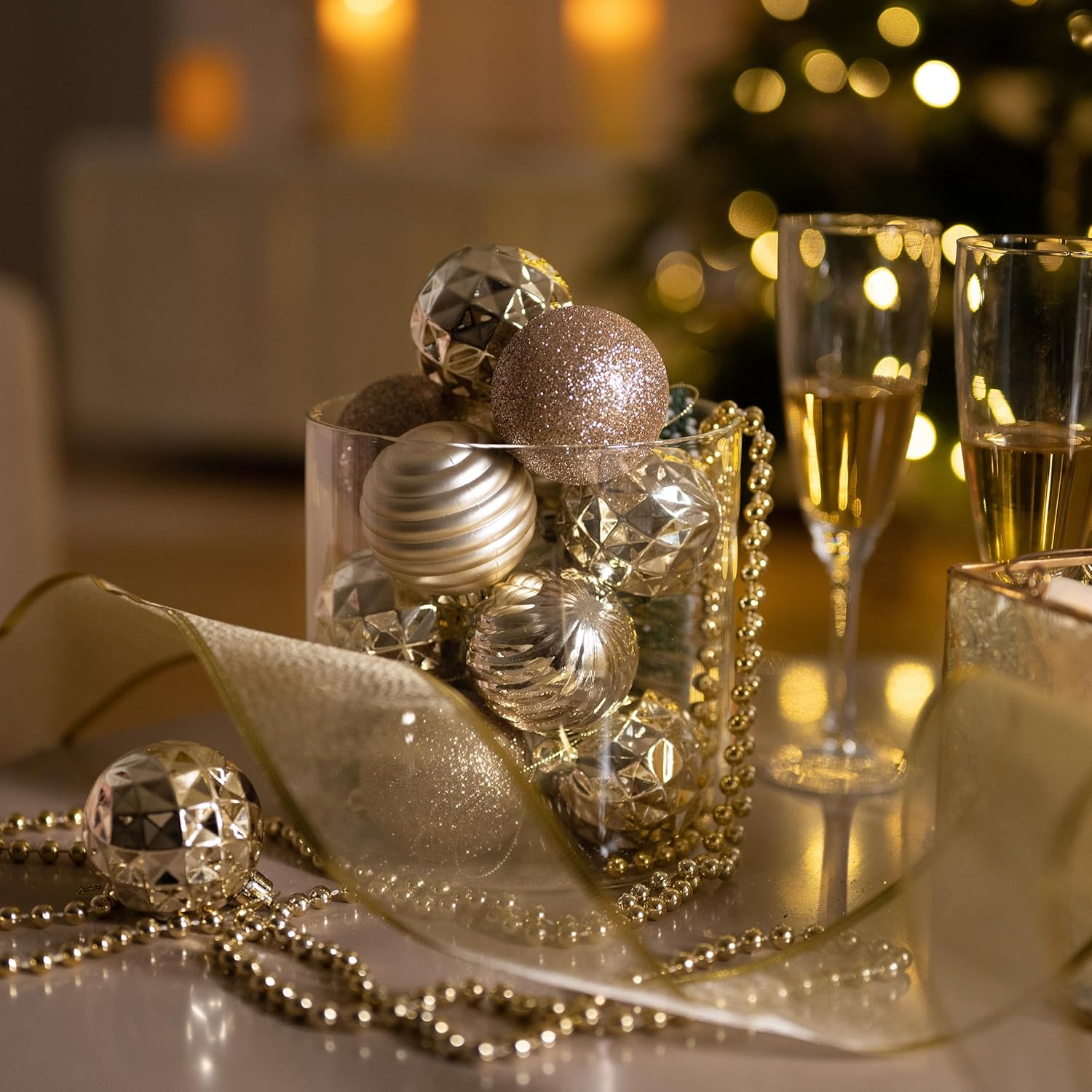 Valery Madelyn Christmas Ornaments Tree Decorations Set for Fall Halloween, 24ct Champagne Gold Shatterproof Ball Ornaments, 2.36" Hanging Ornament Bulk for Xmas Holiday Party Decor