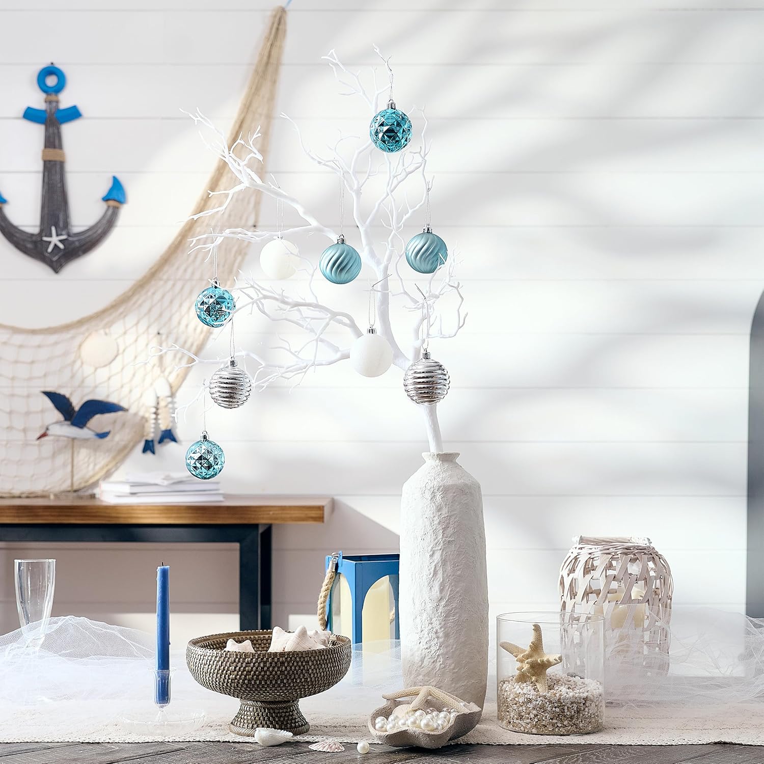 Valery Madelyn Christmas Ornaments Tree Decorations Set for Fall Halloween, 24ct Light Blue Silver Shatterproof Ball Ornaments, 2.36" Hanging Ornament Bulk for Xmas Holiday Party Decor