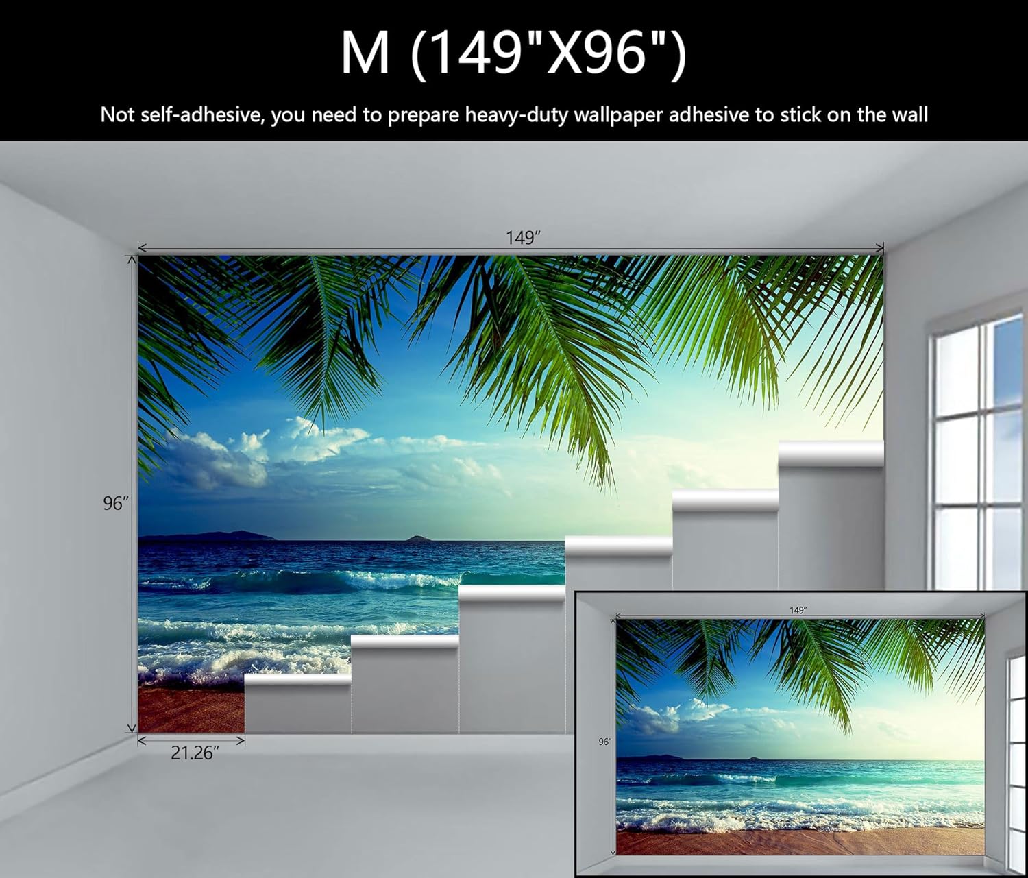 WFBHUA-Large Beach Scene Wallpaper Mural Dusk Waves Wall Murals for Bathroom Living Room Bedroom(Not Peel and Stick)
