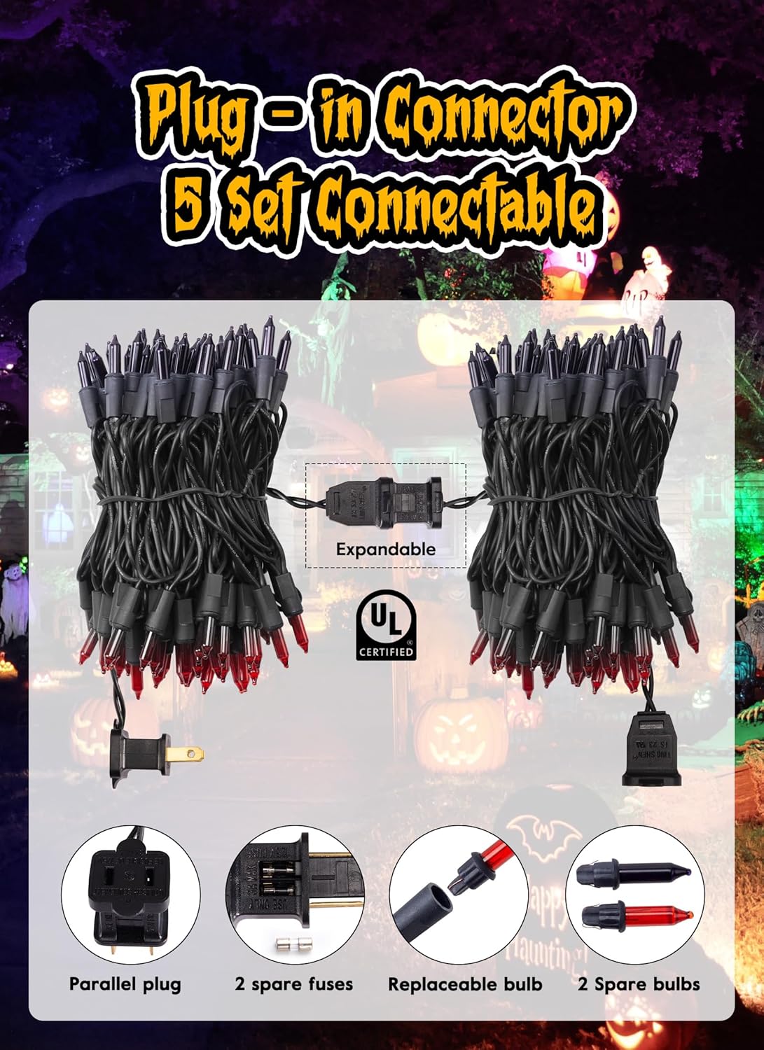 - End Extension: Up to 5 sets of the same mini incandescent string lights connectable, which will make you get 125 feet 500 lights to customize your need for large area decorations, creating a grand view of haunting mood. 3 inches tail cord with key designed female connector for speedy connection