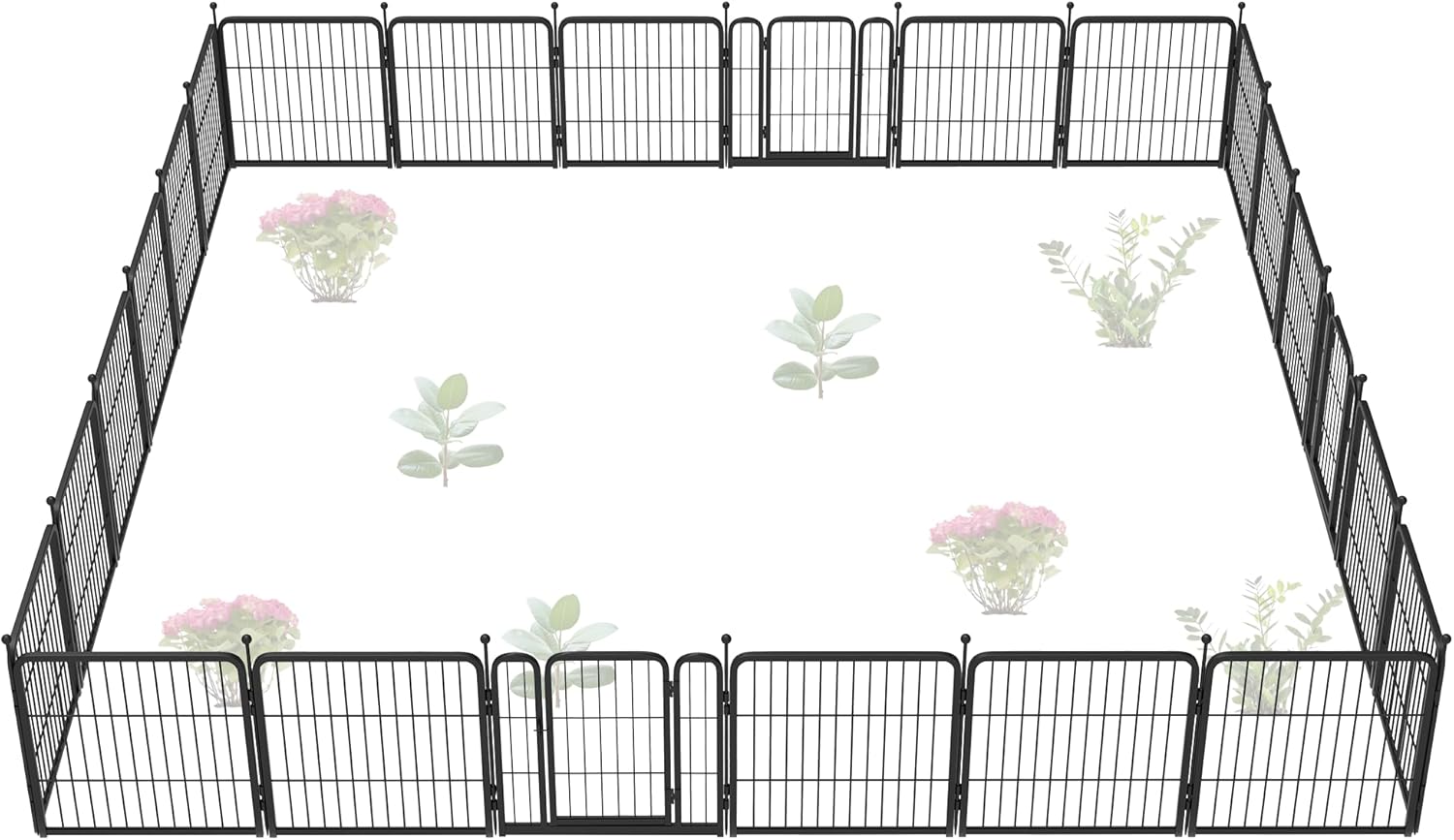 FXW Garden Fence Outdoor for The Yard – 24in(H) x 44.4ft(L) Heavy Duty Metal Animal Barrier for Dog and Rabbit, Decorative Dog Fence, 24 Panels, Black