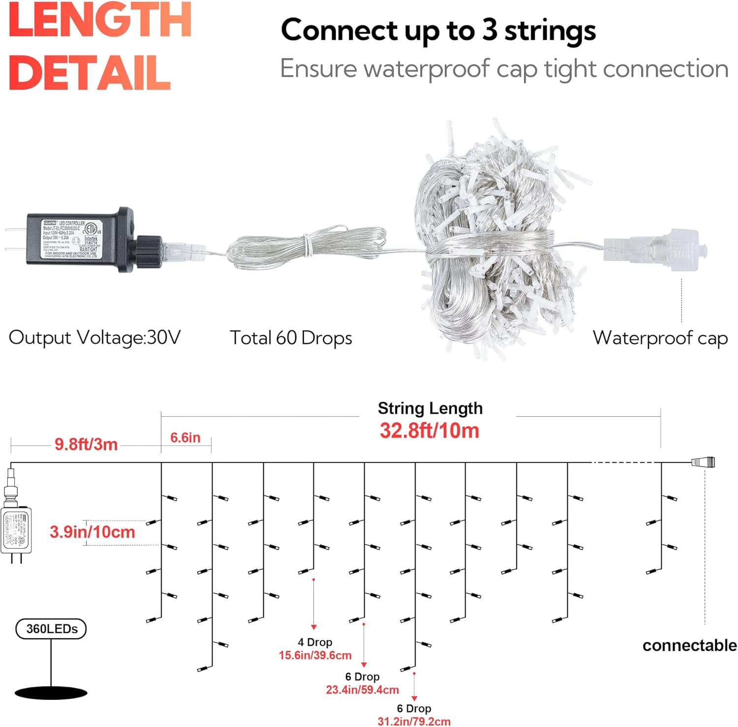 - 💝【Excellent After-Sales Service:】:Christmas icicle lights are carefully inspected before selling, so you can buy with confidence. If you have any questions or problems about our products, please feel free to contact us, we will solve the problem for you at the first time. Hope you can have a pleasant shopping experience!