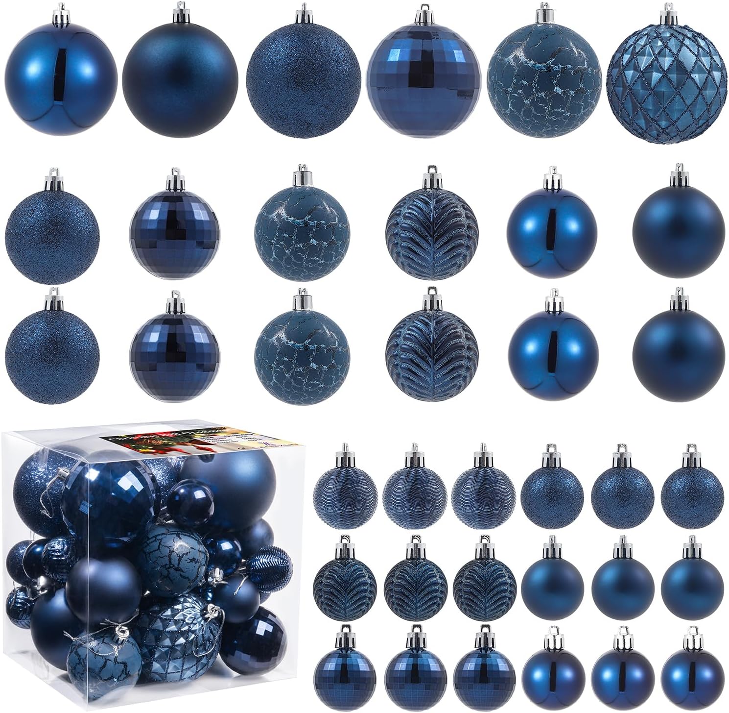 LANGXUN 36pcs Midnight Blue Christmas Tree Decorations Balls, Bolas De Navidad, 2025 Christmas Decor, Indoor Outdoor Shatterproof Christmas Ornaments, Xmars Party Wedding Suppiles