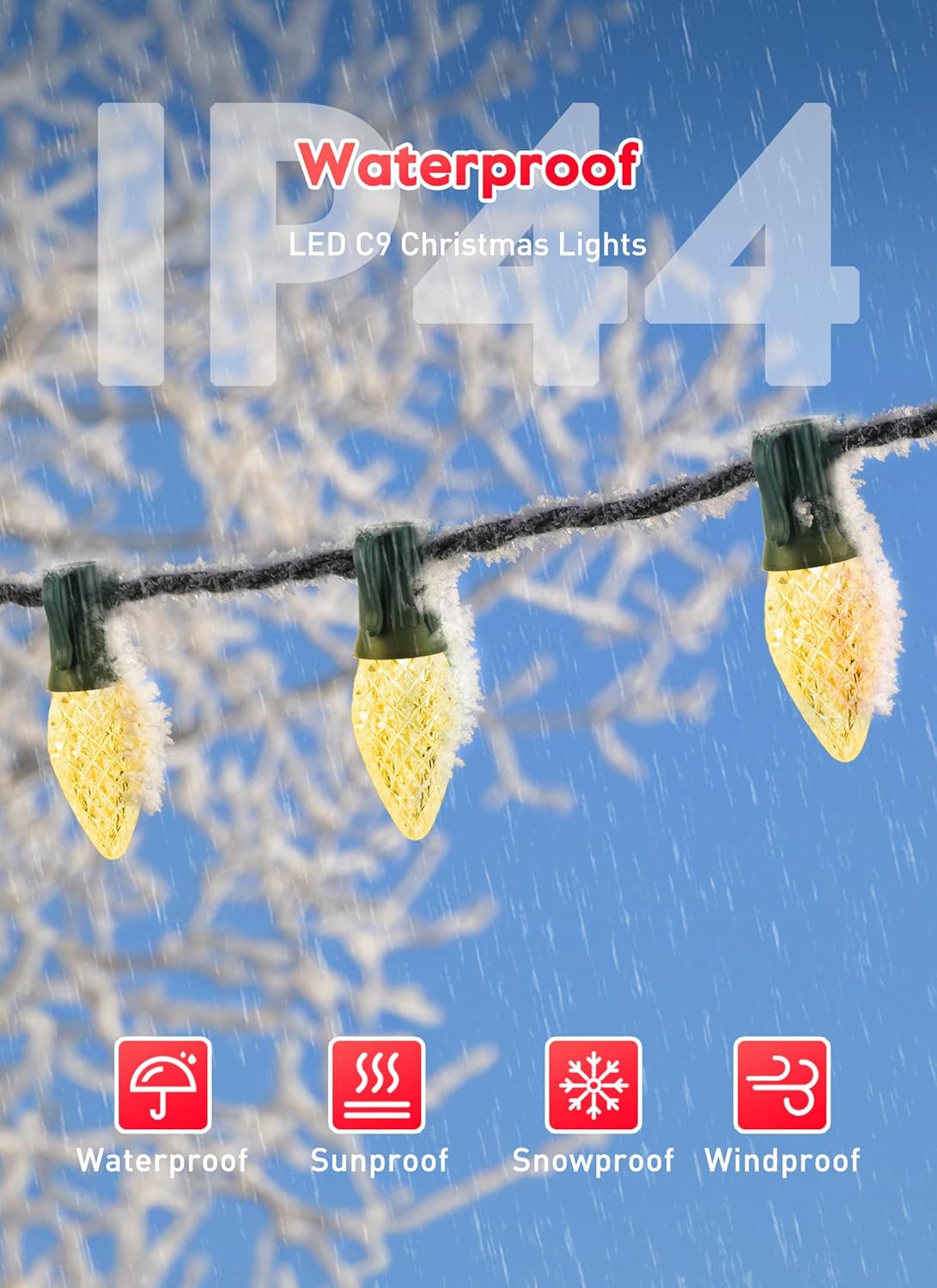 - Parallel Wiring and Shatterproof C9 Christmas Lights : This 100 foot Minetom outdoor C9 Christmas lights is built for heavy-duty use and includes impact resistant bulbs to help withstand drops, water-sealing features for weather protection, Highly impact proof bulbs can withstand accidental falling off from hanging position