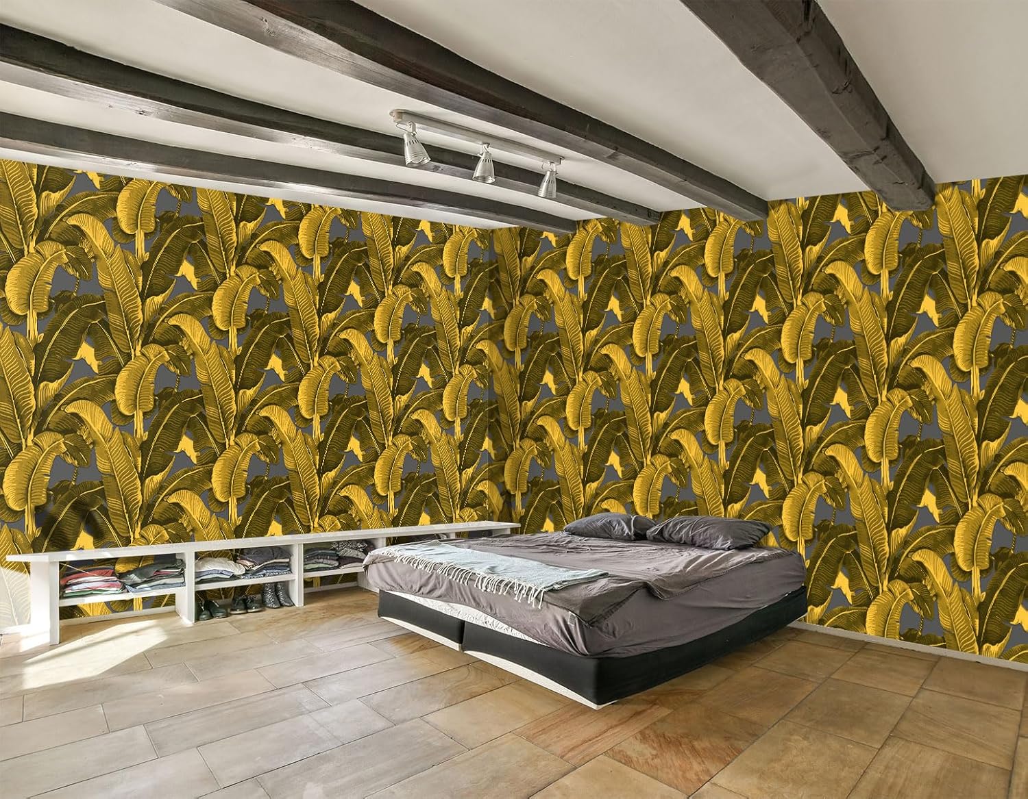 Vintage Gold Banana Leaf Bathroom wallpeper Living Room Bedroom Tropical Plant Wall Mural - 274"x96" (Not Peel and Stick)