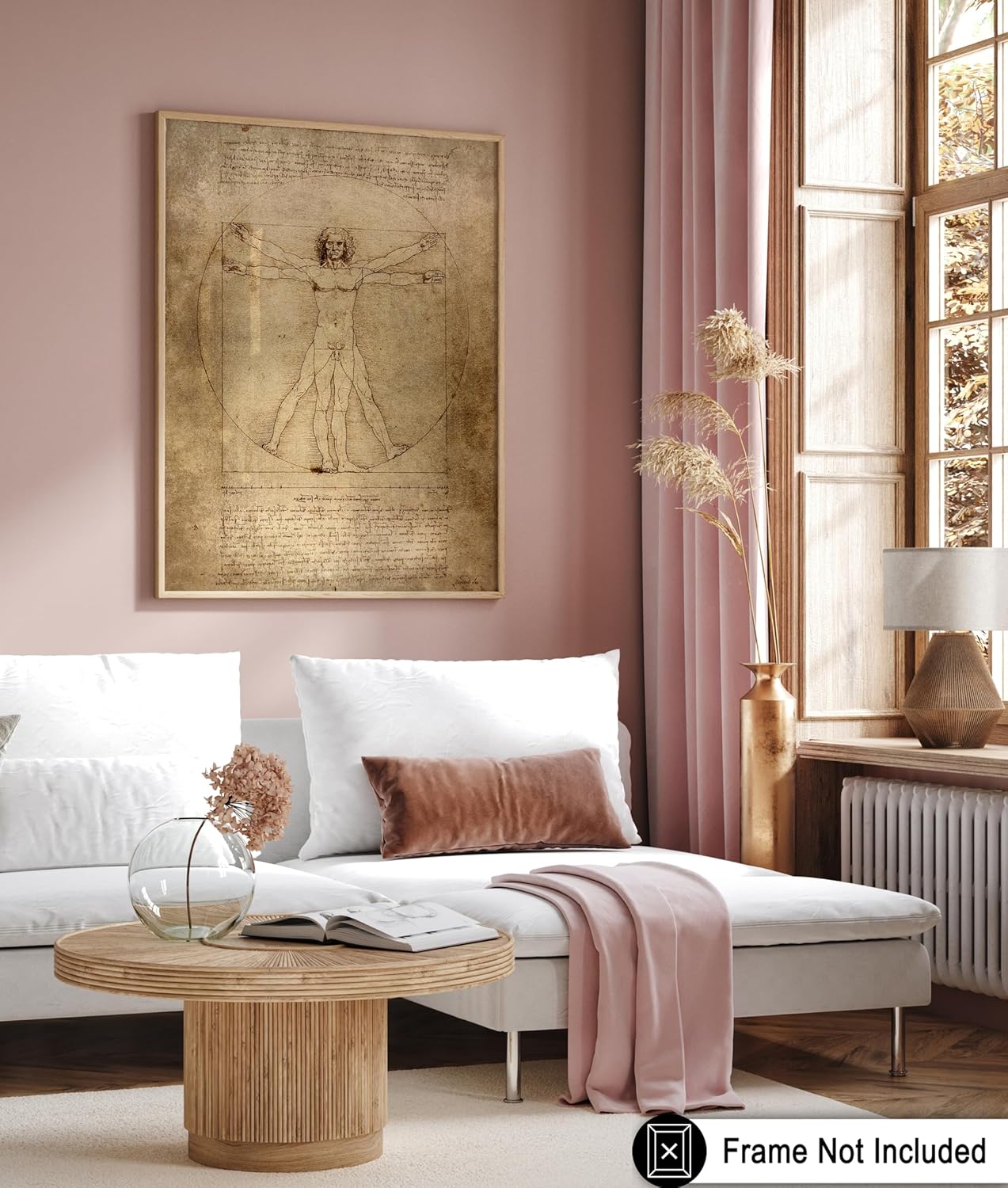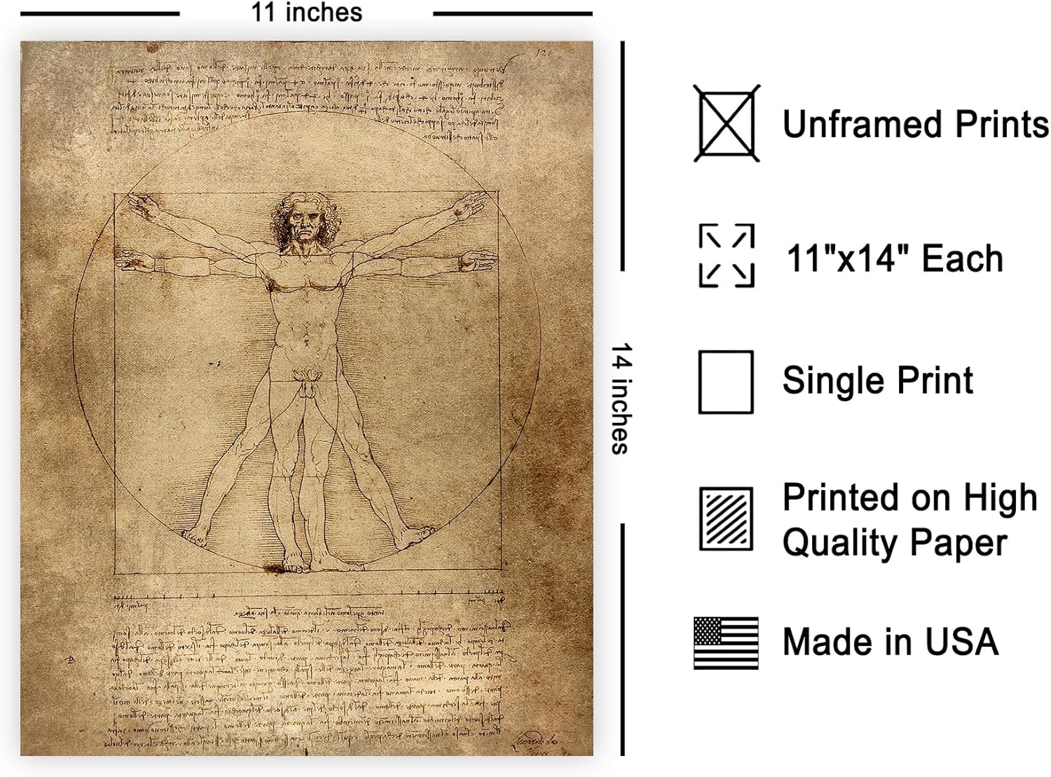 Poster Master Vintage Leonardo Da Vinci Poster - Retro Vitruvian Man Print - Drawing Art - Renaissance Art - Gift for Men & Women - Decor for Living Room, Bedroom or Office - 11x14 UNFRAMED Wall Art