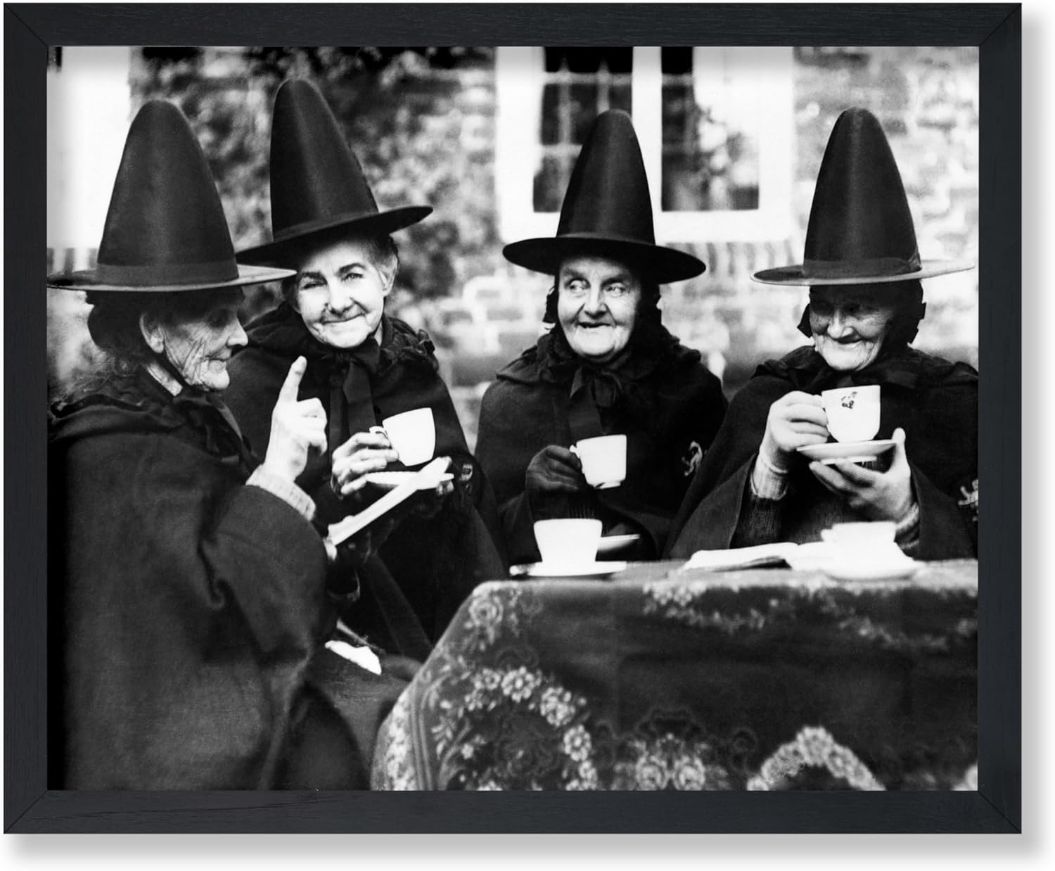 Poster Master Vintage Witches Tea Party Poster - Retro Witchcraft Print - Halloween Art - Gift for Men & Women - Funny Gothic Decor for Living Room, Bedroom, Kitchen or Dorm - 8x10 UNFRAMED Wall Art