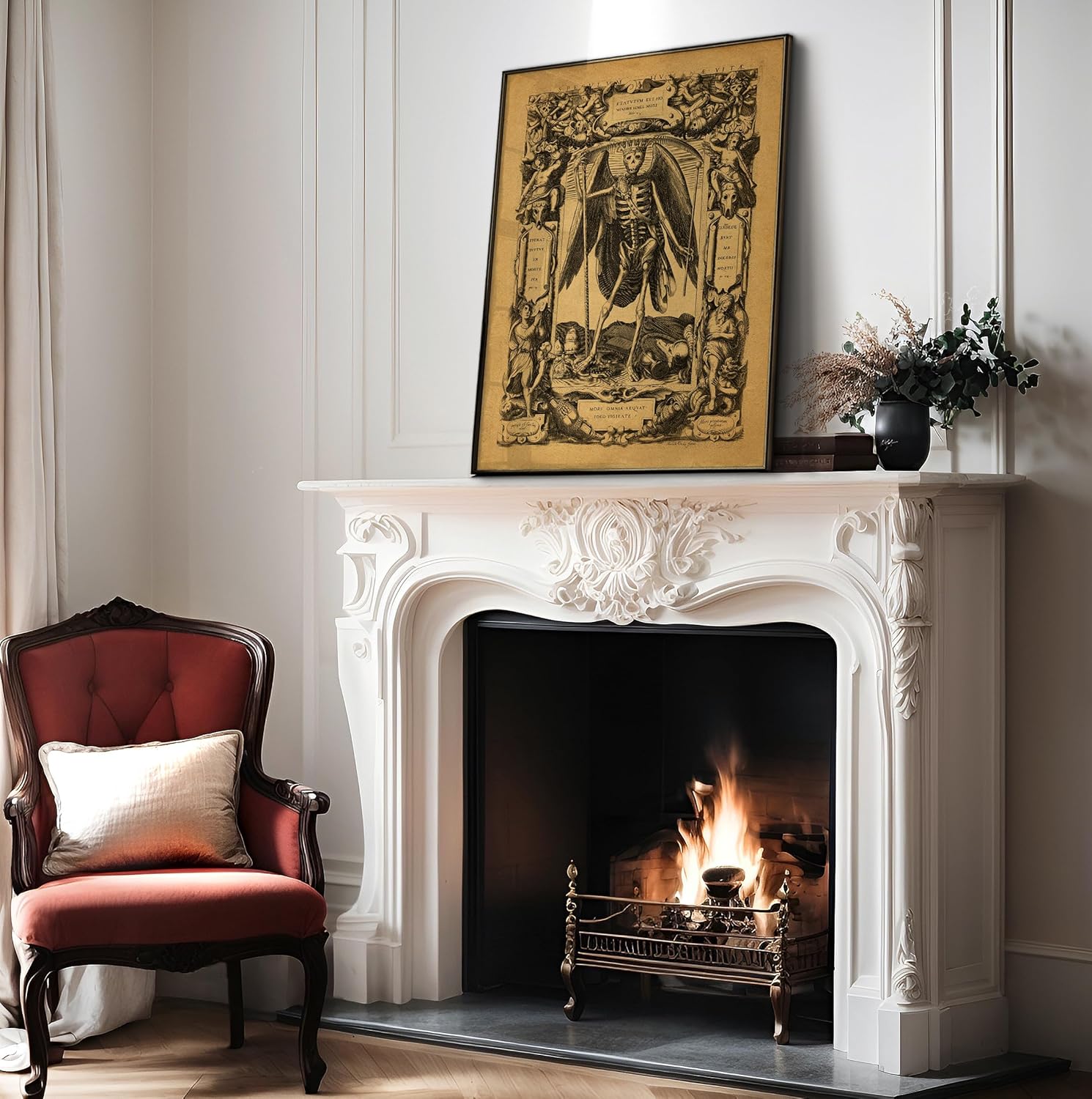 Poster Master Vintage Angel of Death Poster - Grim Reaper Print - Halloween Art - Mirror of Human Life Art - Gift for Men & Women - Gothic Decor for Living Room or Bedroom - 11x14 UNFRAMED Wall Art