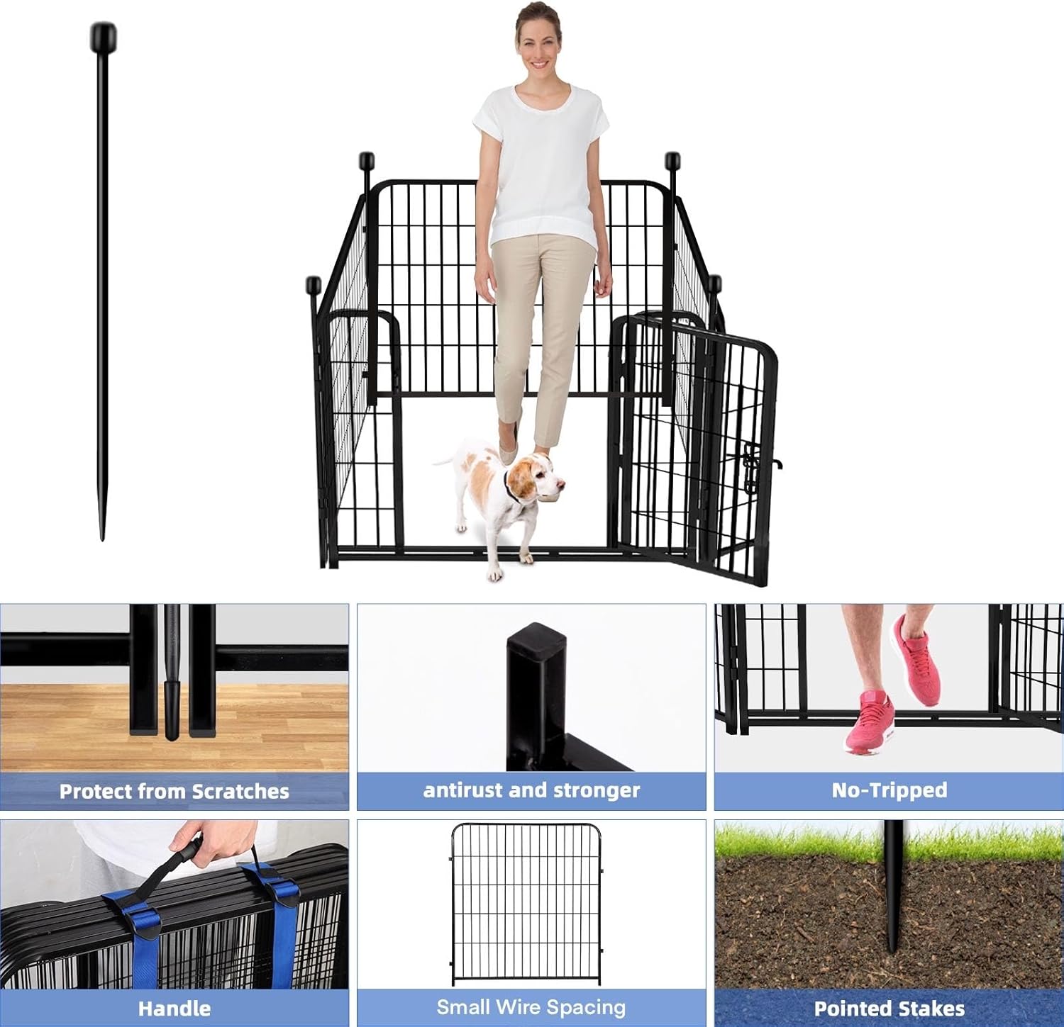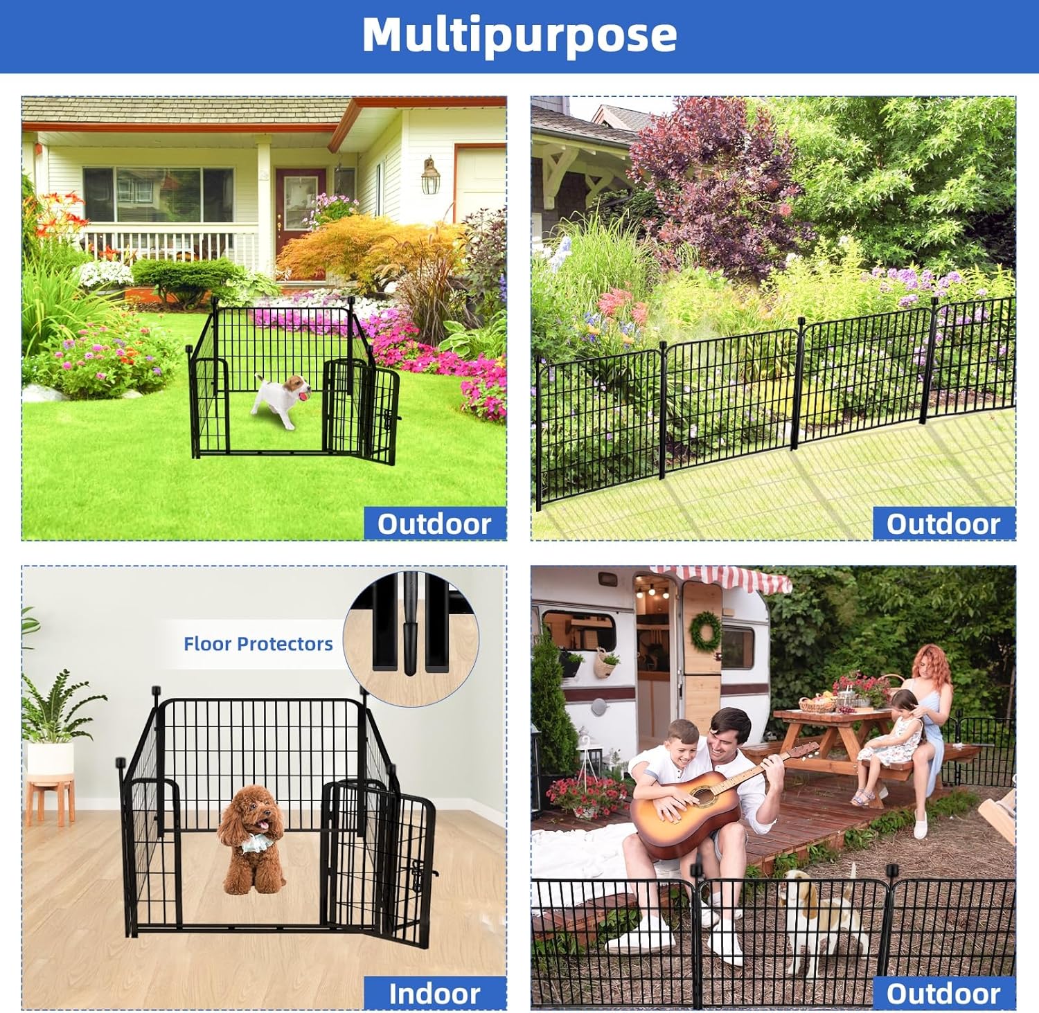ADAVIN 32 in(H) Garden Fences and Borders,1 Gate+3 Panels Dog Fence Outdoor for Yard, Heavy Duty Iron Metal Animal Barrier Fence, Camping Fence, Flower Garden Fencing,Total 8.9 Ft(L), Black