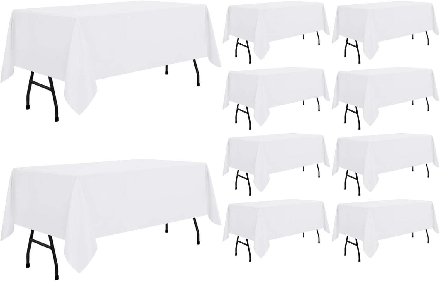sancua 10 Pack White Tablecloth 60 x 84 Inch, Rectangle Table Cloth for 4ft Tables - Stain and Wrinkle Resistant Washable Polyester Table Cover for Dining Wedding Banquet Party Buffet Restaurant