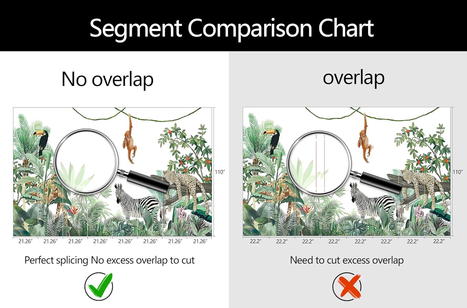 - Mural Size: The total size of this mural wallpaper is 170" x 110" / 432CM x 280CM (W x H), cut into 8 pieces, each measuring 21.26" x 110", for easy installation.