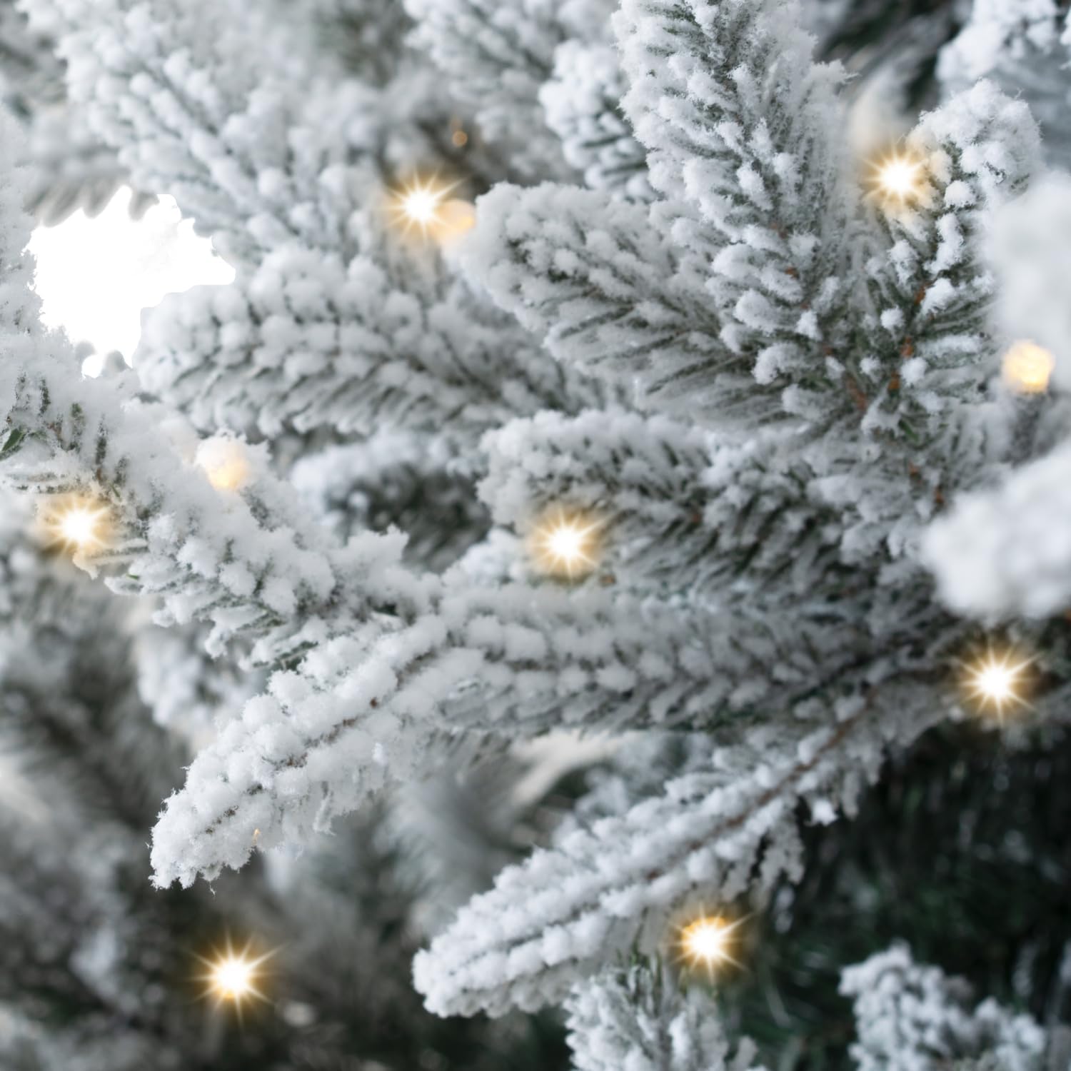 - PRE-LIT TO SAVE TIME The fake Christmas Tree comes Pre-lit with 650 incandescent lights that make setting up your tree a breeze. These lights emit a warm glow that highlights your decorations and holiday gifts making your Snow Flocked Christmas Tree extra-special.