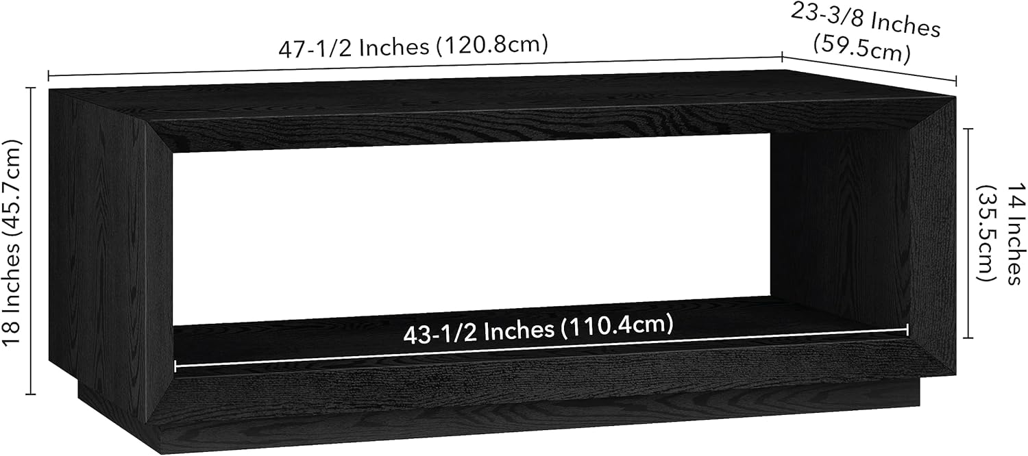 Henn&Hart 48" Rectangular Coffee Table with Open Storage Shelf for Living Room, Family Room, or Office, Black Grain