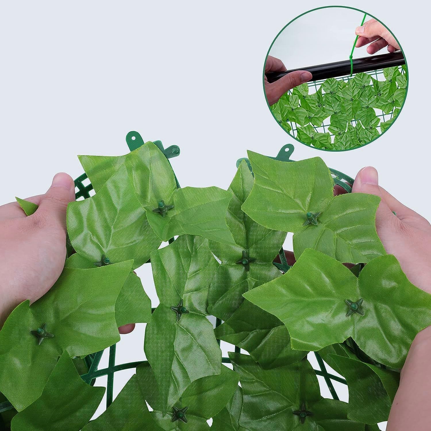 - 【Beautiful Ivy Privacy Fence Look】 -- Expandable faux privacy fence, artificial ivy leaves are natural looking to provide every indoor or outdoor space a blooming, earthy feel without the need for watering,Use zip ties or tape to install, it can be cut to get the size and shape you want, can be used as wall decoration, fence, privacy.