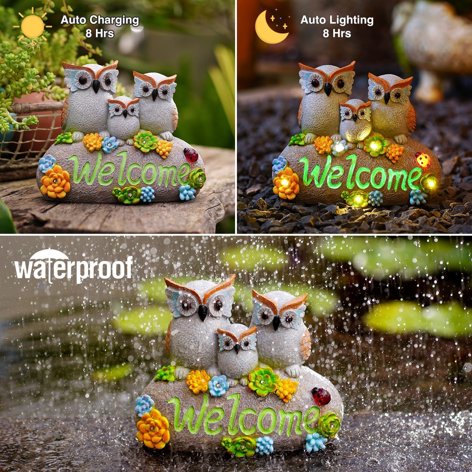 Nacome Solar Owl Statues for Garden Decor: Welcome Sign Outside Lawn for Patio/Balcony/Yard Art/Lawn Ornament House Warming Gifts for Mom/Women