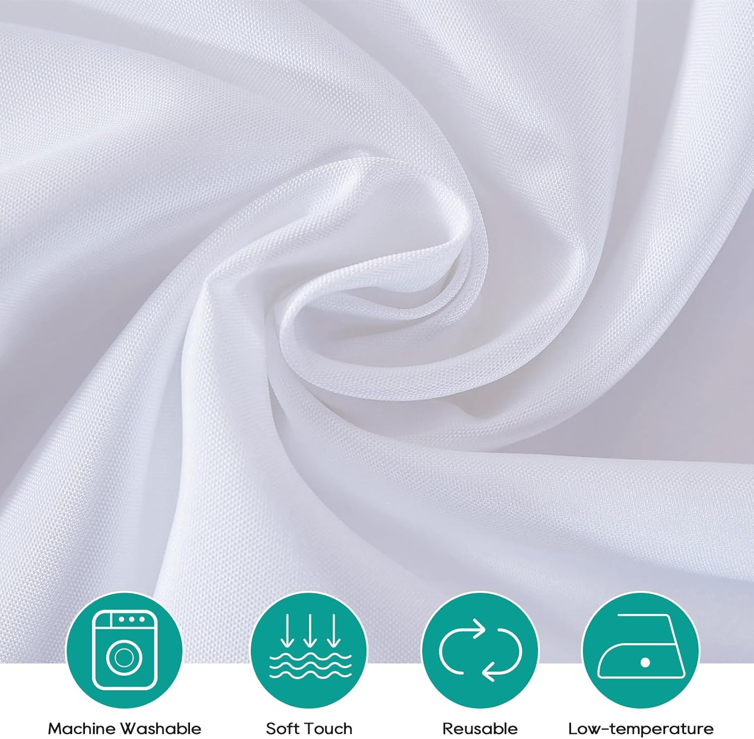 - Easy Care: Our white round table cover, which are easy to clean, are recommended to be ironed at a low temperature after machine or hand washing
