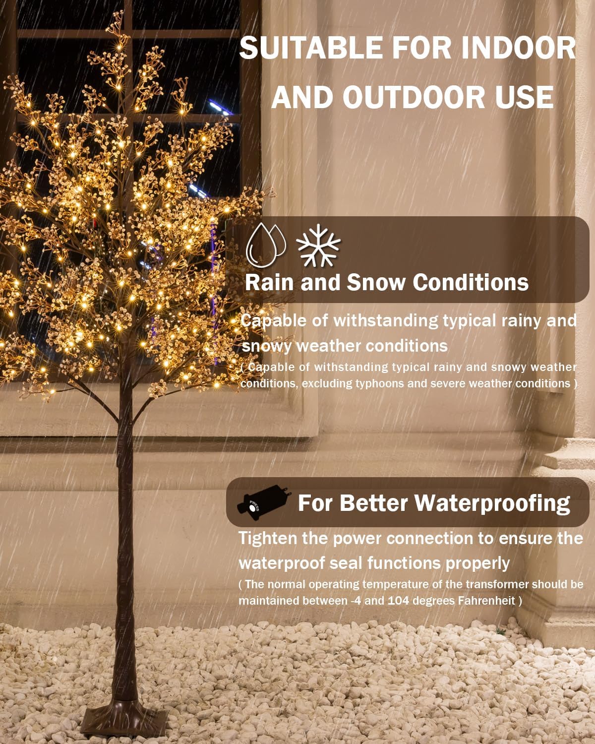 6ft Lighted Baby's Breath Tree with 184 Warm White LED Lights for Holiday Decor - Dimmable, UL Certified, Waterproof - Ideal for Indoor and Outdoor Decoration