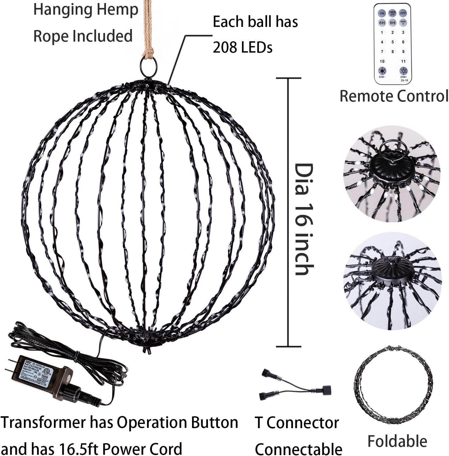 - Stunning Illumination: Featuring a total of 208 LED lights, these Christmas decoration light balls deliver a captivating glow that is sure to enhance the festive spirit. The combination of warm white and multicolor lights creates a dazzling display that will brighten up any outdoor space, whether it's your patio, tree, gazebo, or any other area you choose to decorate.