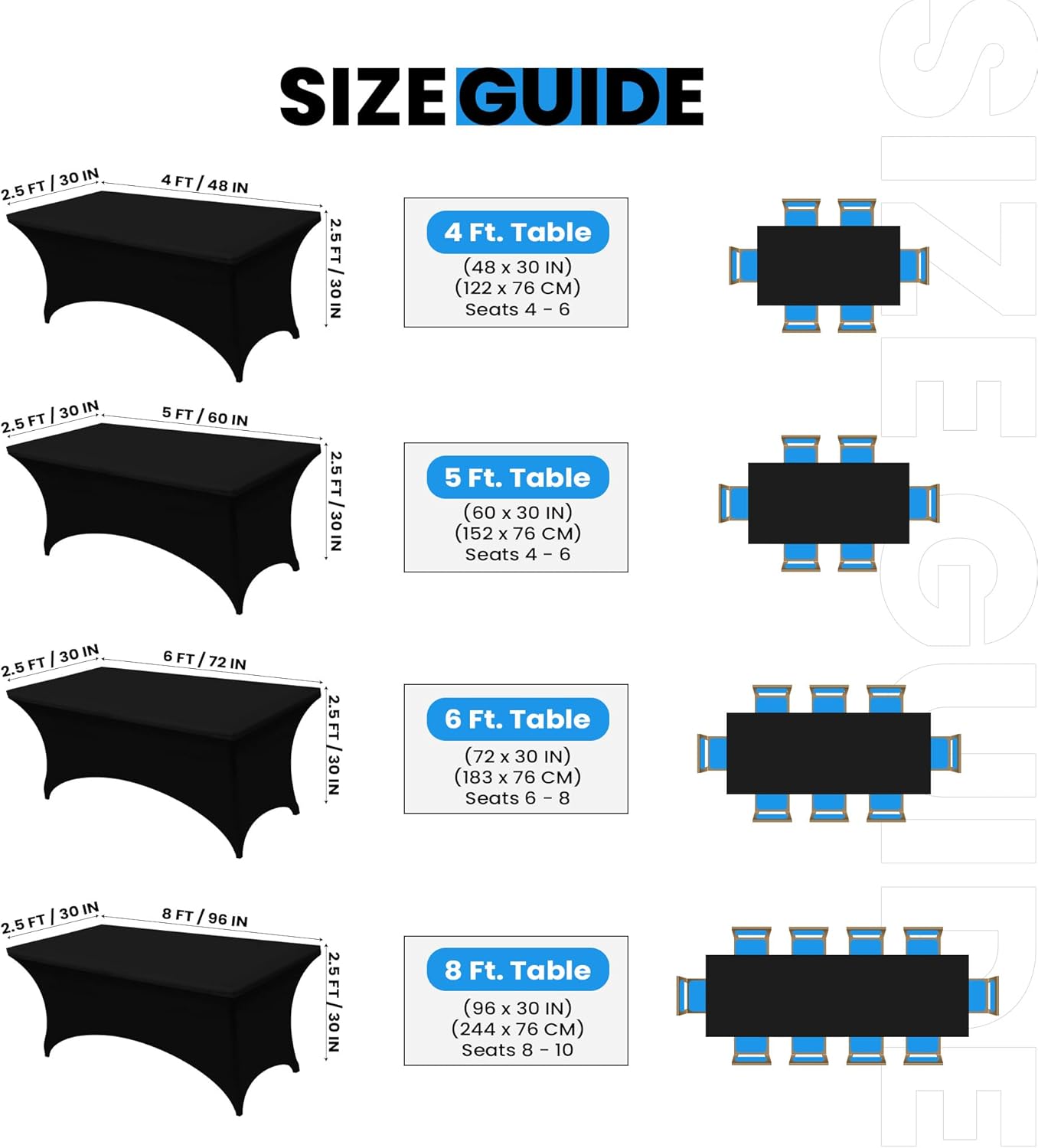 - Snug Fit with Reinforced Pockets: Designed for a 5-foot table (60"L x 30"W x 30"H), this 2-way stretch spandex cover features reinforced leg pockets to ensure a secure, professional look that won’t slip or ride up.
