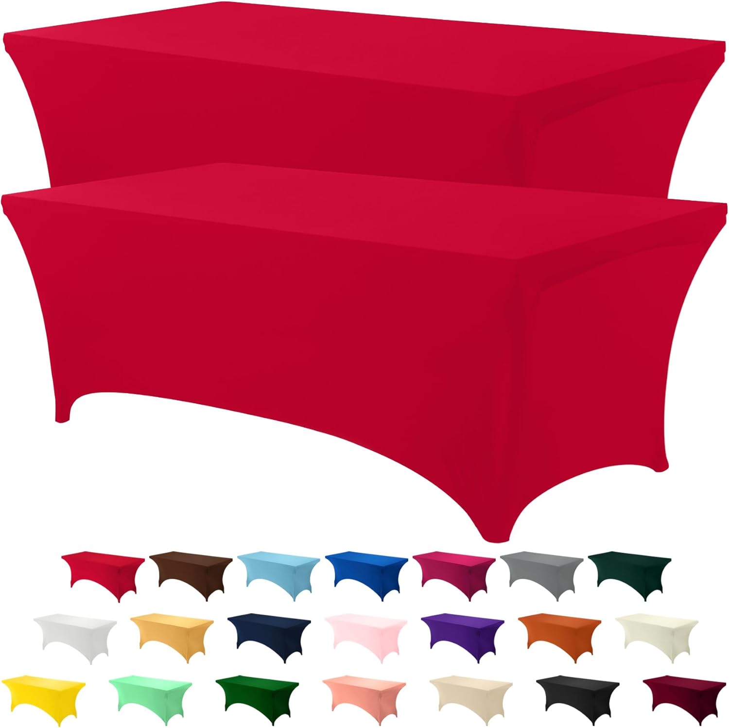 Utopia Kitchen 6FT Spandex Tablecloth [2 Pack, Red] 200 GSM Stretch, Fitted, Washable and Wrinkle Resistant Table Cloth Rectangle Cover for Trade Shows, Wedding, Parties [72Lx30Wx30H Inch]