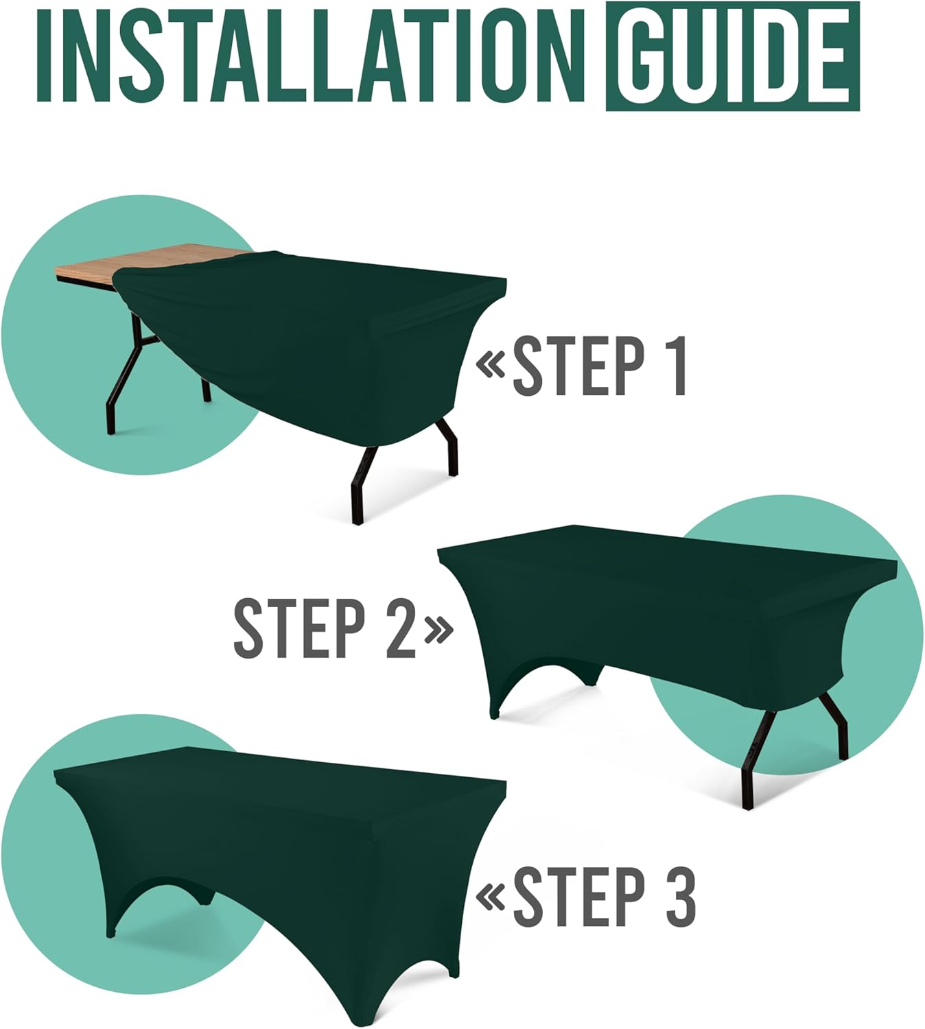 Utopia Kitchen 6FT Spandex Tablecloth [2 Pack, Hunter Green] 200 GSM Stretch, Fitted, Washable and Wrinkle Resistant Table Cloth Rectangle Cover for Trade Shows, Wedding, Parties [72Lx30Wx30H Inch]