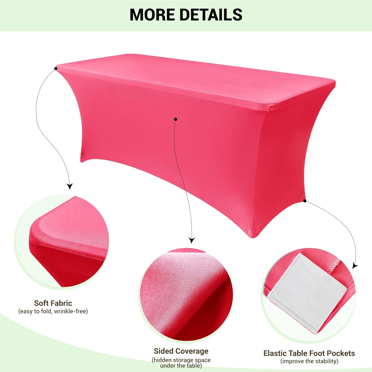 Obstal 6ft Stretch Spandex Table Cover for Standard Folding Tables - Universal Rectangular Fitted Tablecloth Protector for Wedding, Banquet and Party, 72L x 30W x 30H Inches, Magenta Red, 2pc