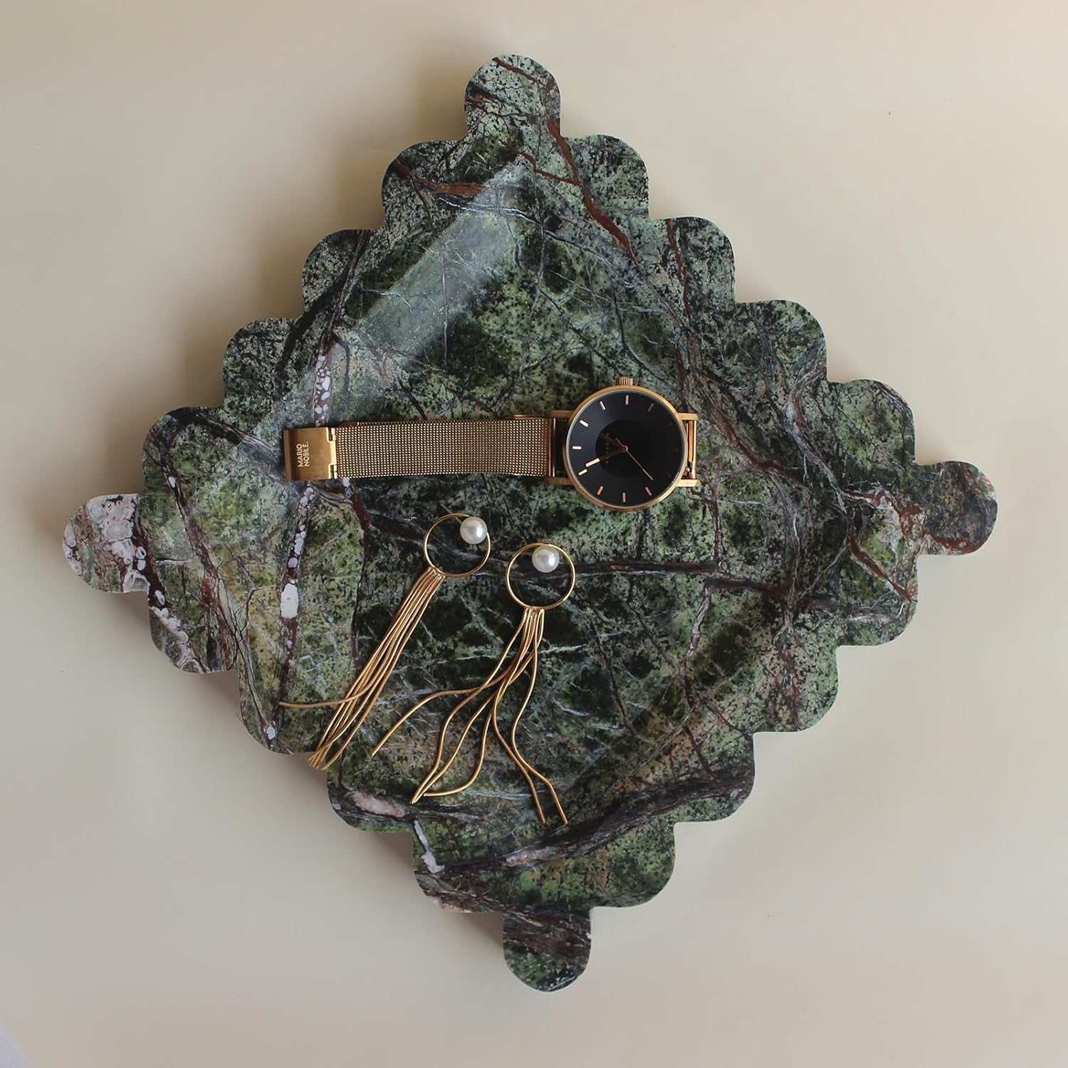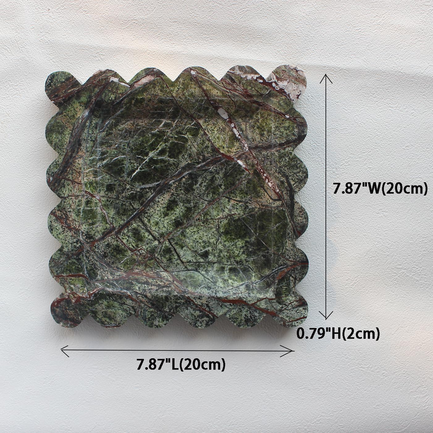Natural Luxury Marble Tray with Scalloped Edge, Handmade Square Decorative Tray, Catch All Tray for Counter, Dresser, Nightstand and Home Décor (Rain Forest Green)