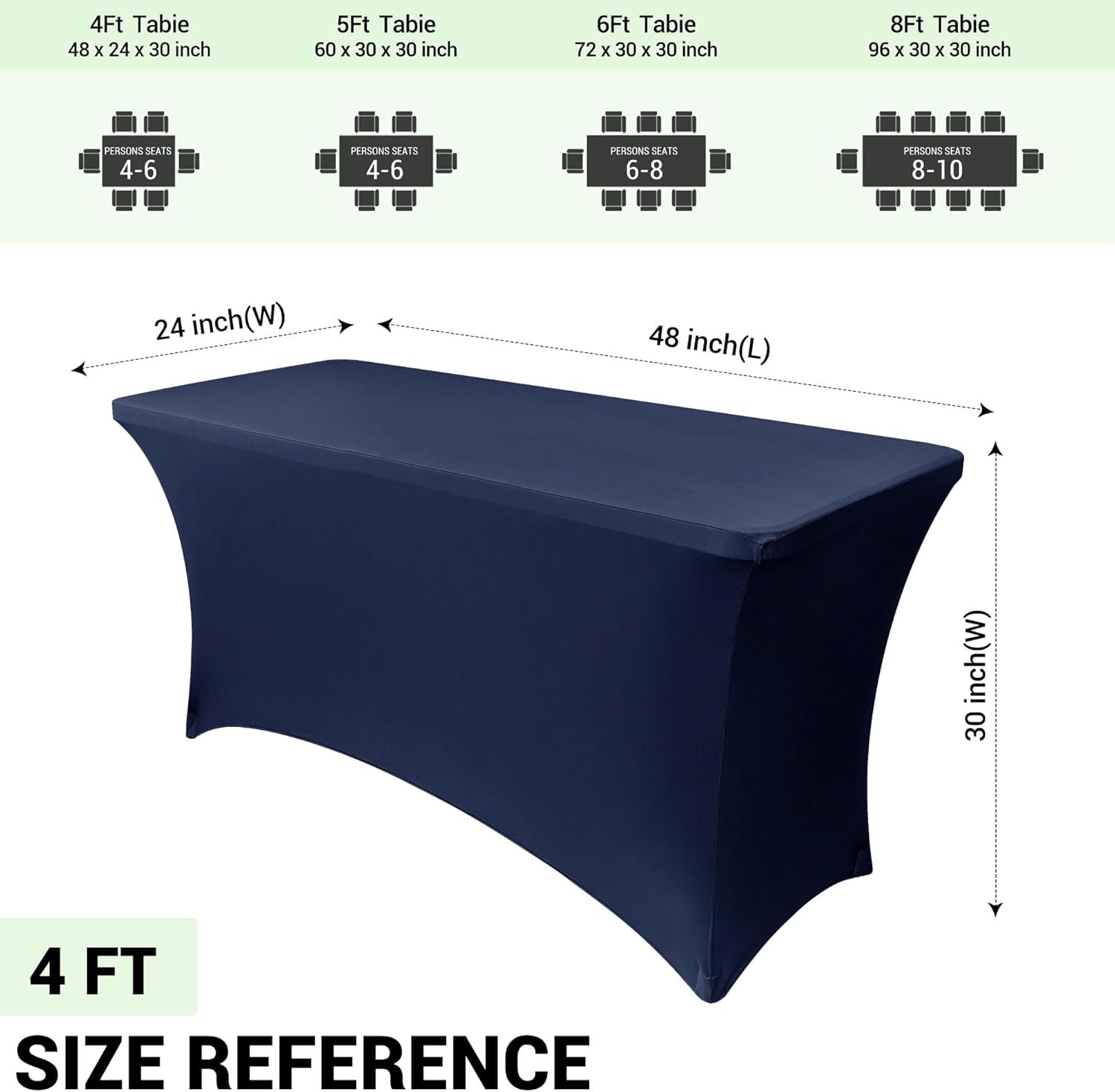 Obstal 4Ft Stretch Spandex Table Cover for Standard Folding Tables - 2 Pack Universal Rectangular Fitted Tablecloth for Party, Banquet, Events, Trade Show (Navy Blue, 48L x 24W x 30H Inches)