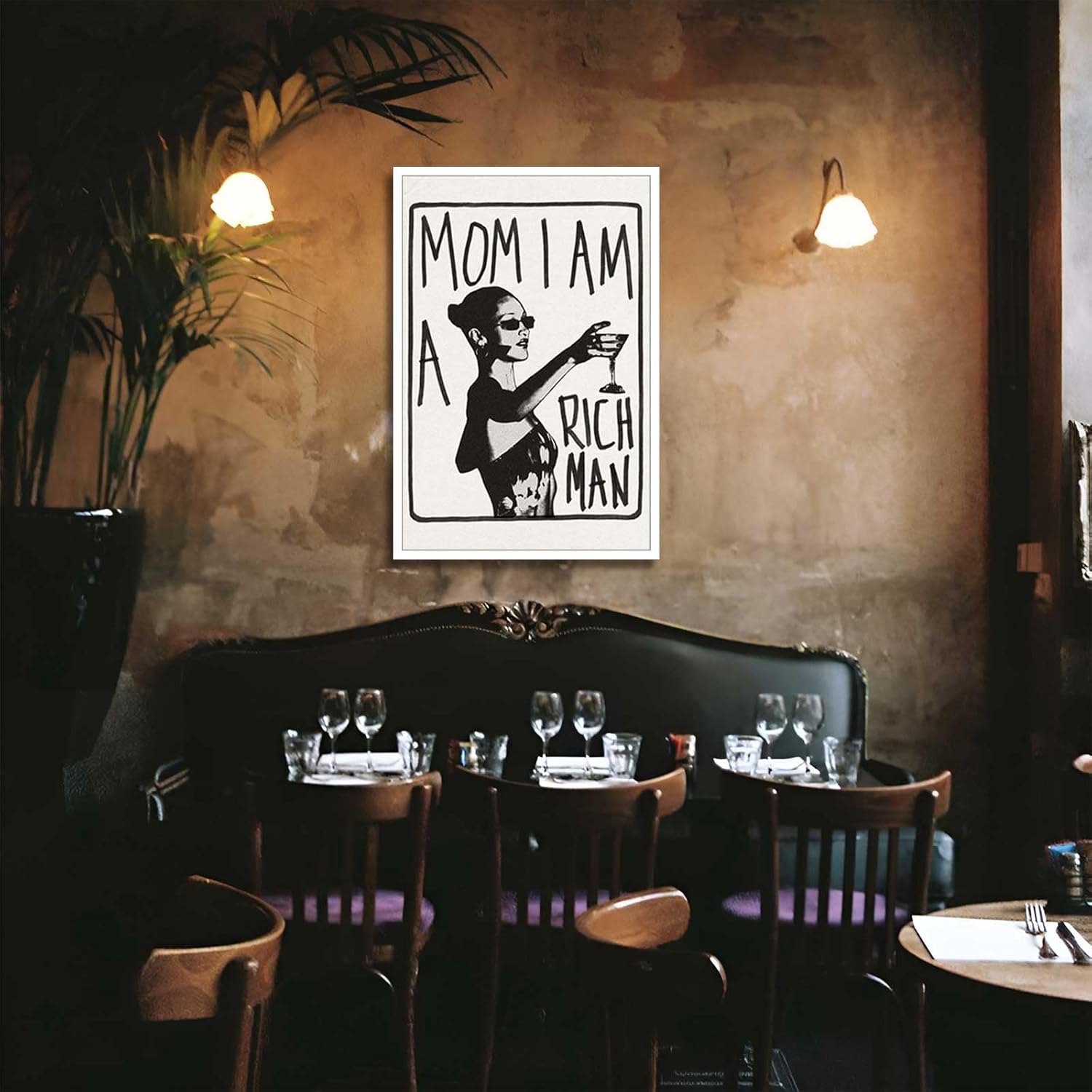 Liyark Mom I Am A Rich Man Aesthetic Retro Music Goblet Poster Feminist canvas Wall Art Vintage Bar Cart Wall Decor Preppy Dorm Decor Unique Wall Art prints painting 12x16in Unframed