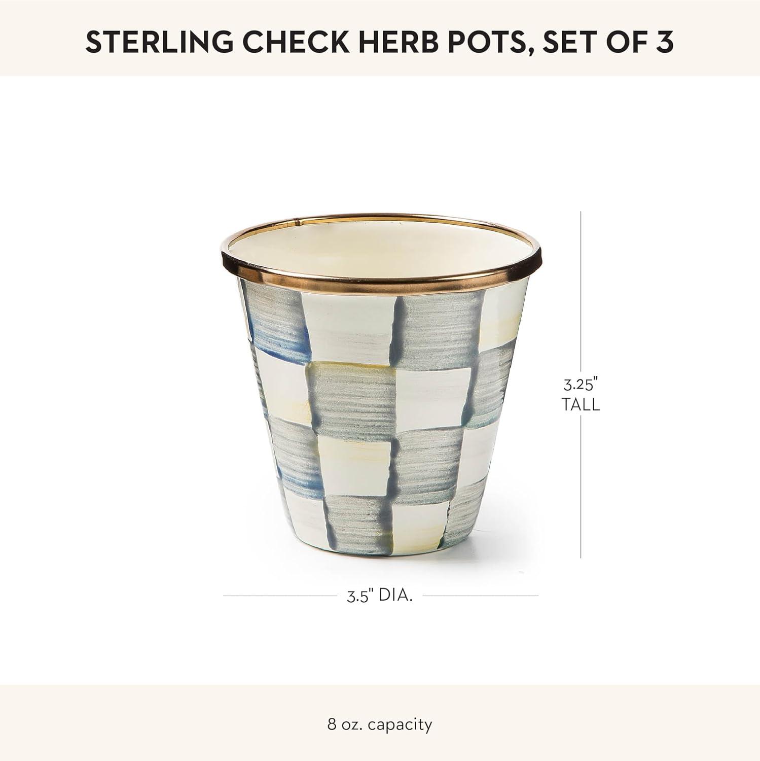 - Style : Sterling Check Enamel Herb Pots