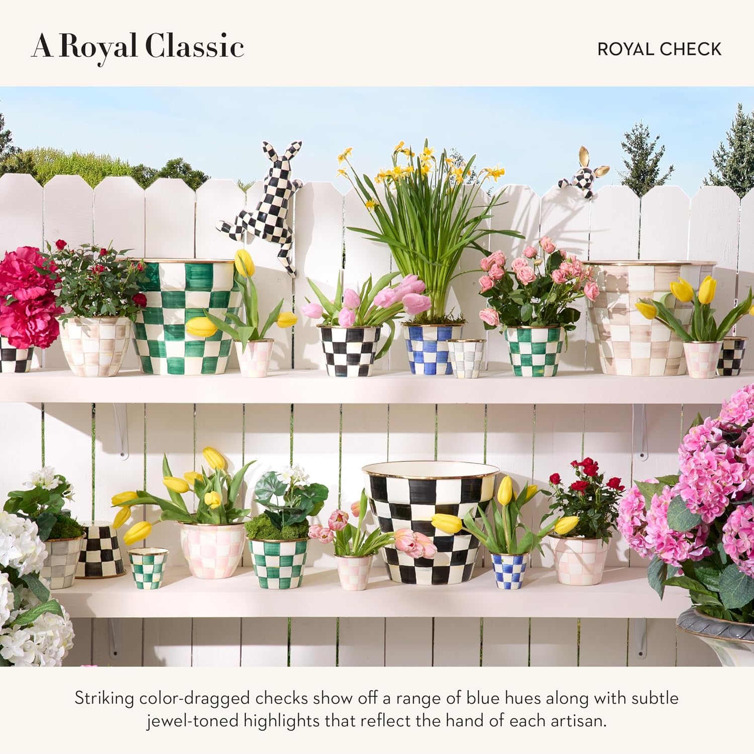 MACKENZIE-CHILDS Enamel Herb Pots, Small Plant Pots for Herbs or Flowers, Set of 3, Blue-and-White Royal Check