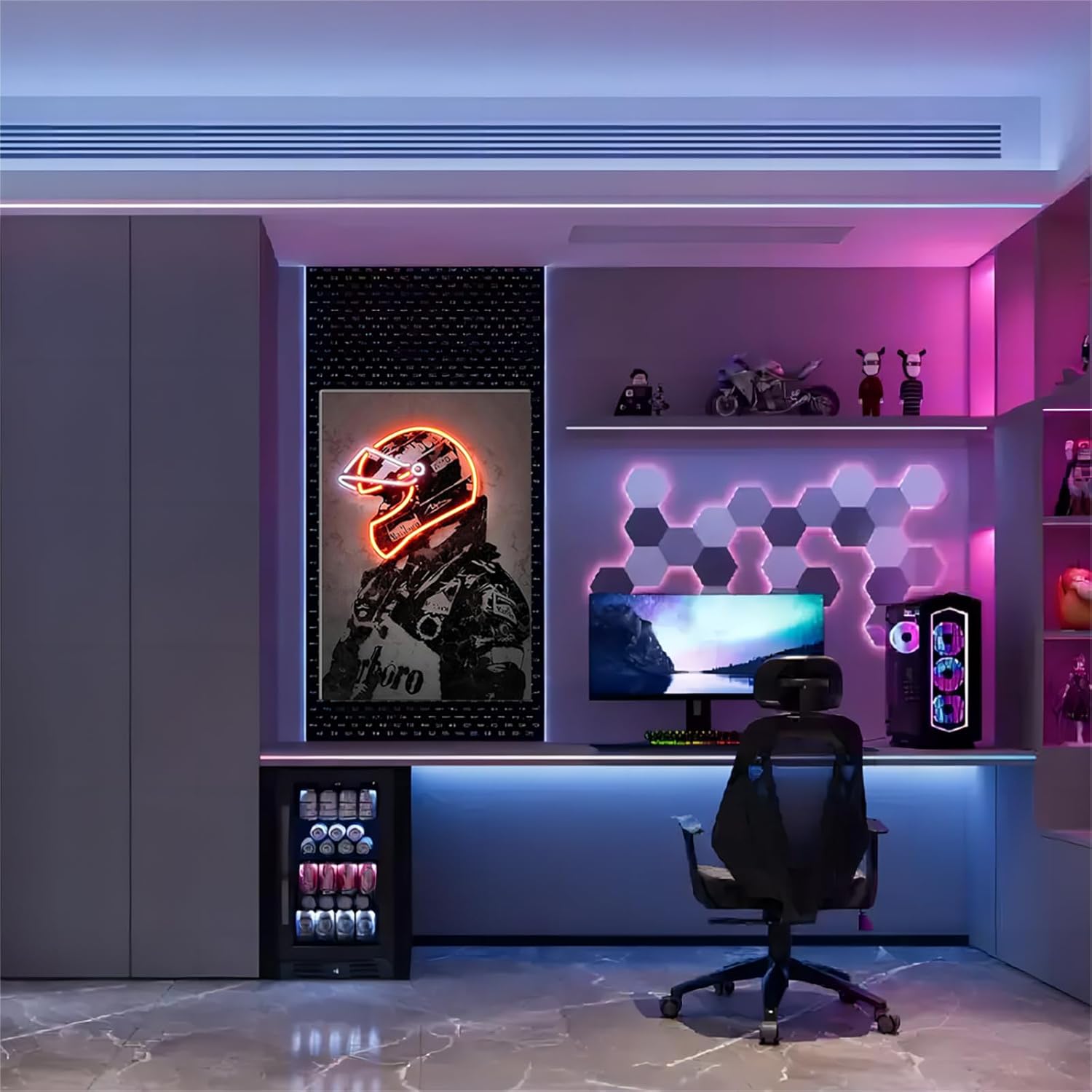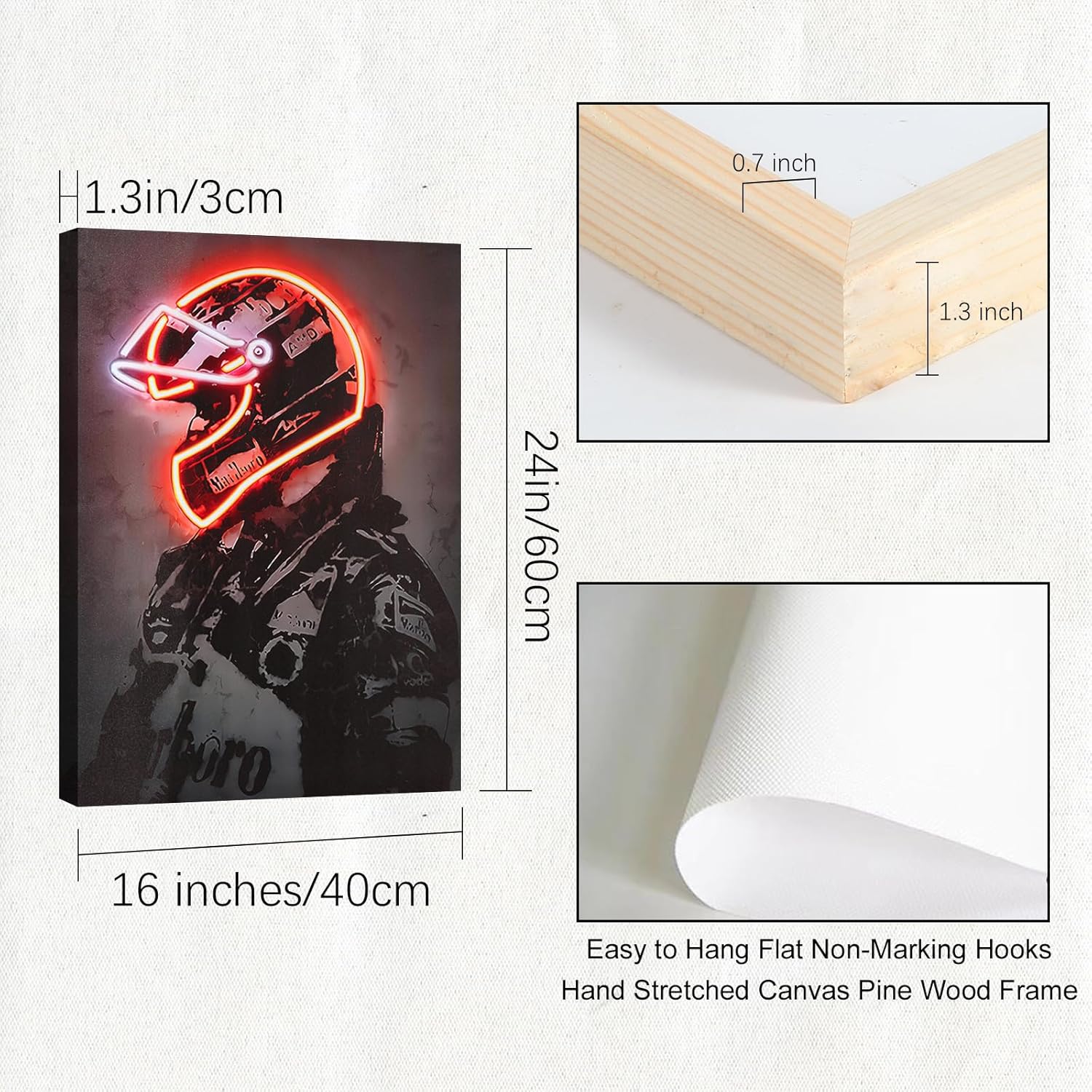 - NEON POSTER WALL PRINT: Racer print measures 16x24 inches (40x60 cm) and is hand stretched on a pine frame. Perfect for decorating sports rooms, gyms and game rooms.