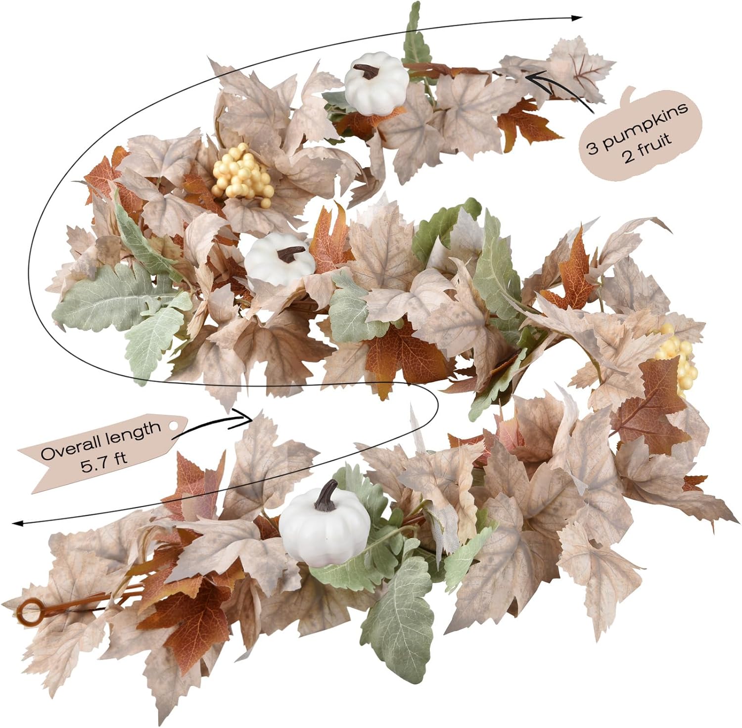 DearHouse Fall Maple Leaf Garland, 5.9Ft Hanging Vine Artificial Autumn Foliage for Thanksgiving, Home, Wedding, Fireplace, Party, Christmas Decor (White)