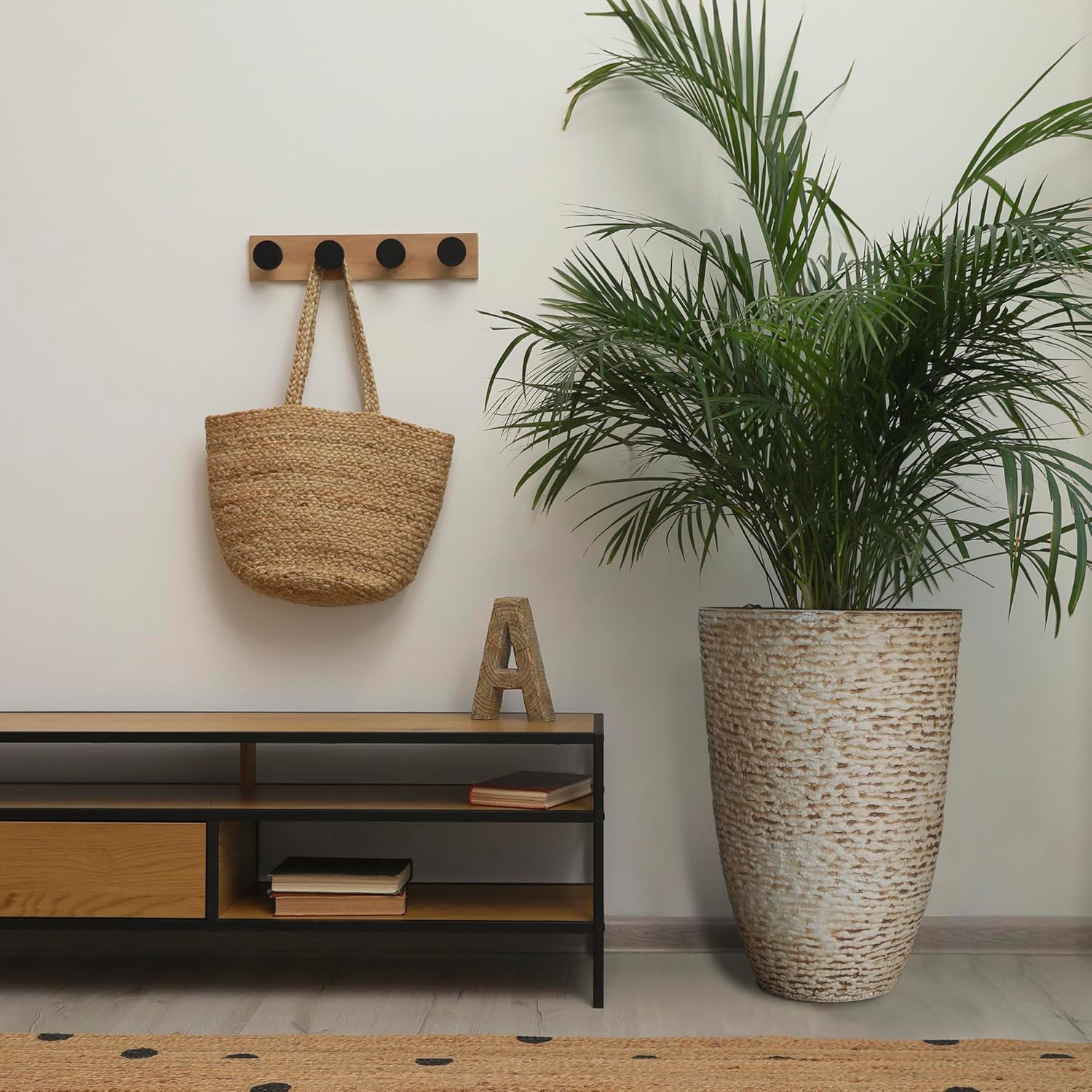 KOL 2-Pack 21in. Tall Plastic Planter - Large Round Tapered Plant Pots with Textured Finish - Beige Imitation Stone Looking Flower Pots for Indoor & Outdoor Plants - Lightweight and Durable
