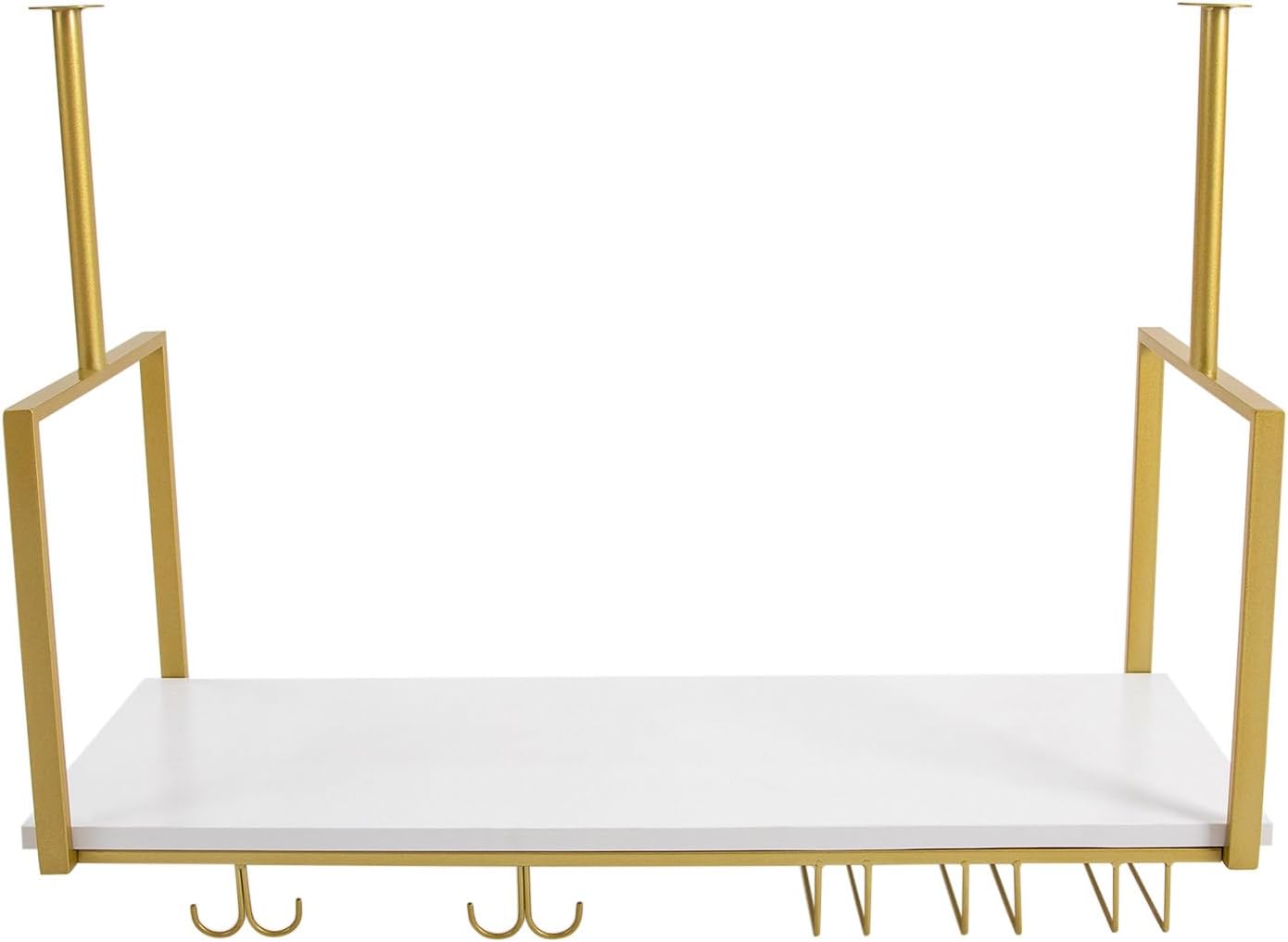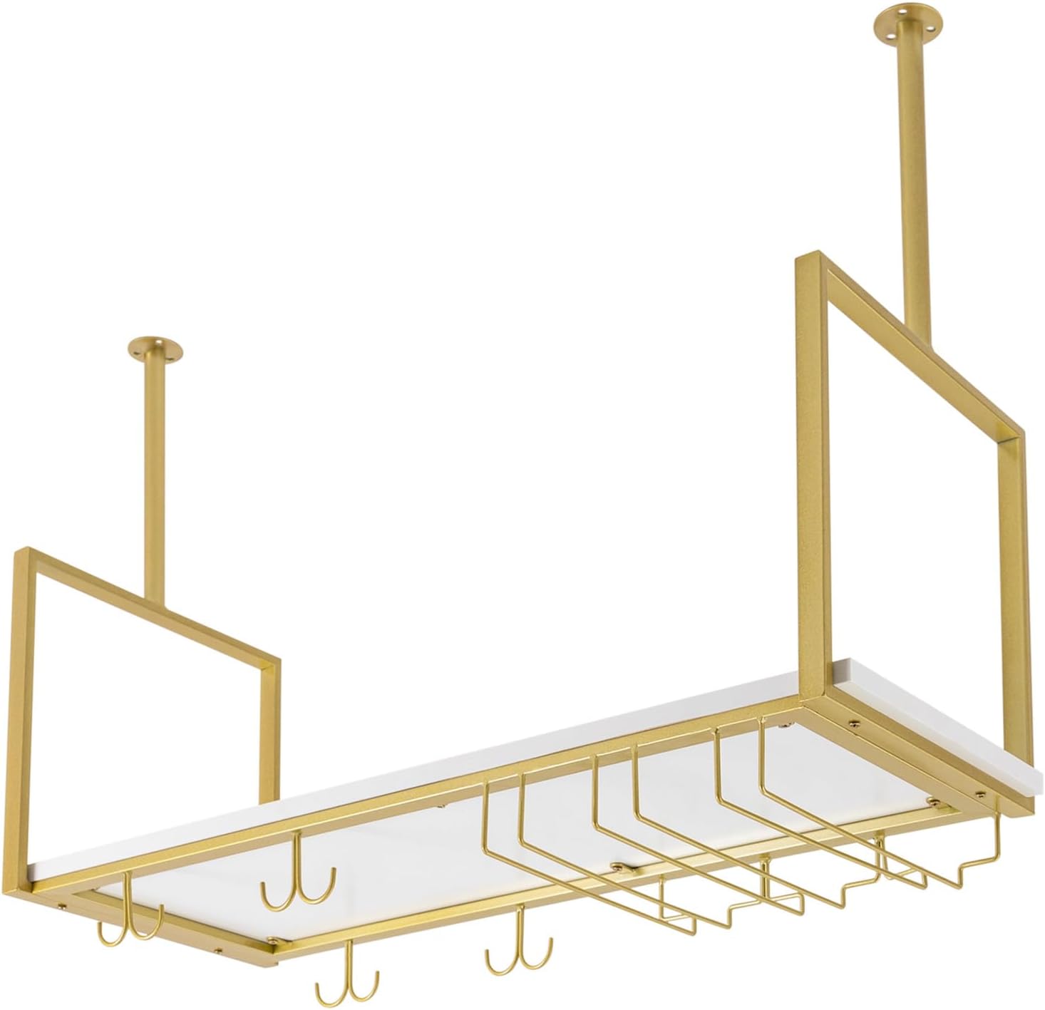 Hanging Wine Rack with Glass Holder Shelf Metal Ceiling Bar Wine Glass Rack Industrial Wall Mounted Floating Shelve Perfect for Bar Cafe Kitchen Restaurant