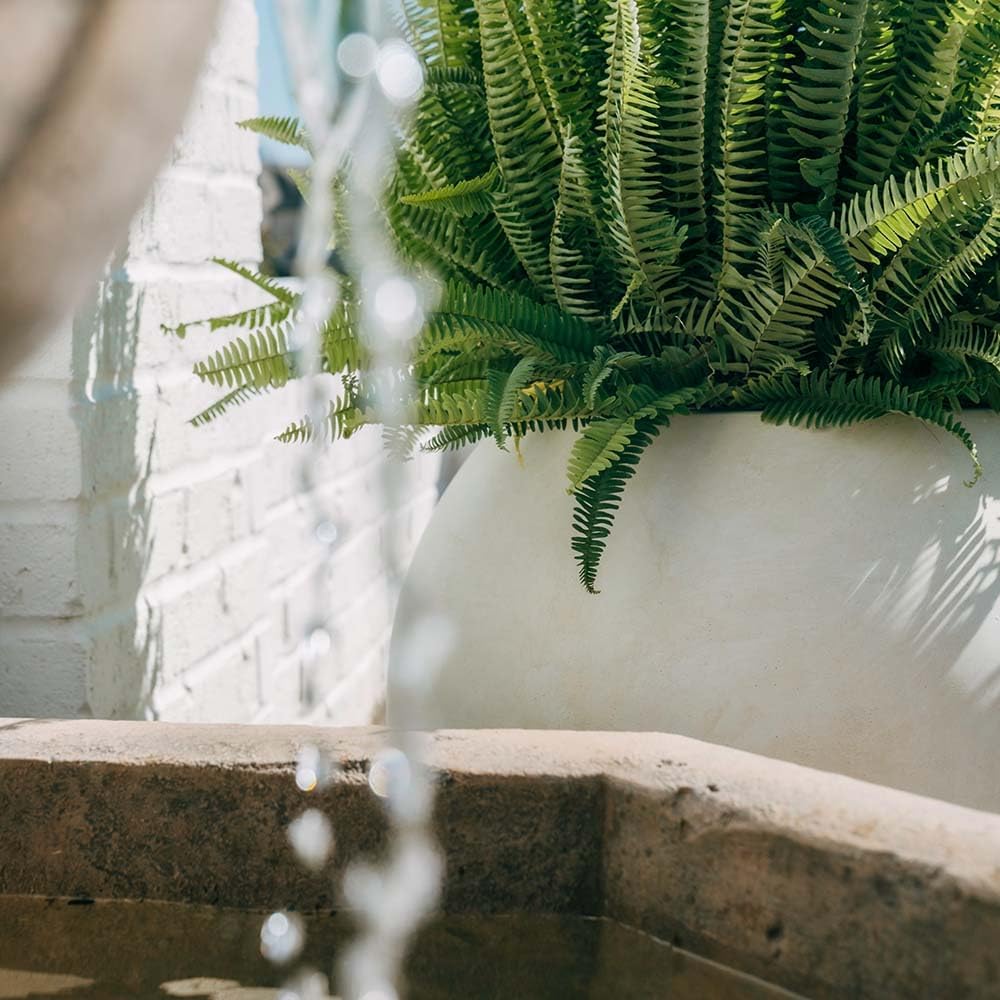 - DURABLE CONSTRUCTION: This weather-resistant pot is made of stone powder and fiberglass composite finished in a satin ivory color for a longer lasting finish.