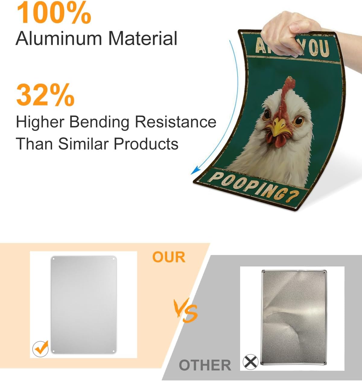 ALKB Chicken Metal Sign for Bathroom Decor - 8x12 Inch Are You Pooping Vintage Chicken Sign Gifts for Chicken Owners