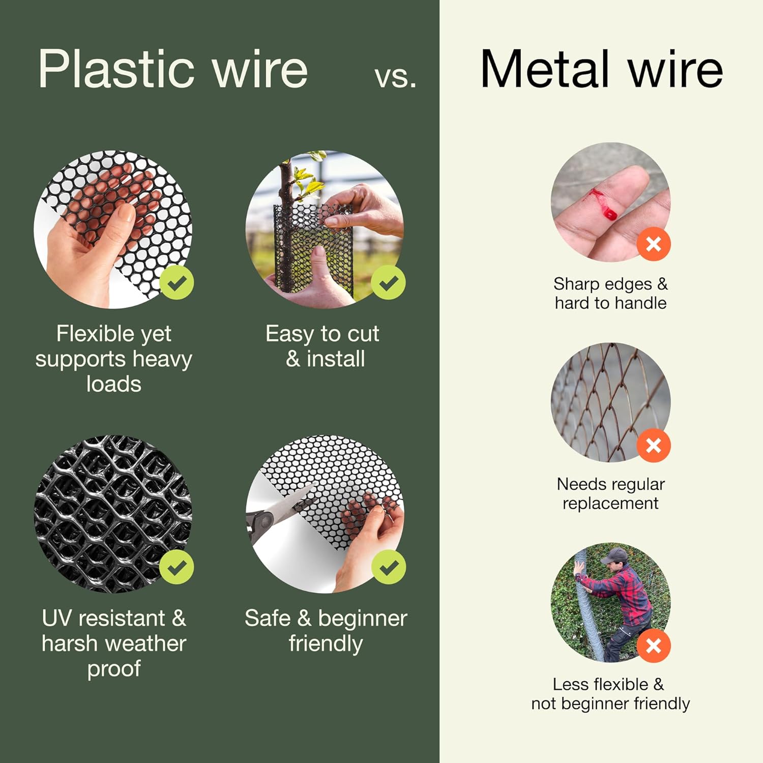 - Versatile DIY Use: Need a garden fence animal barrier or dog fence barrier? This plastic chicken wire mesh is your go-to for DIY projects, from garden netting to a fence for dogs outside