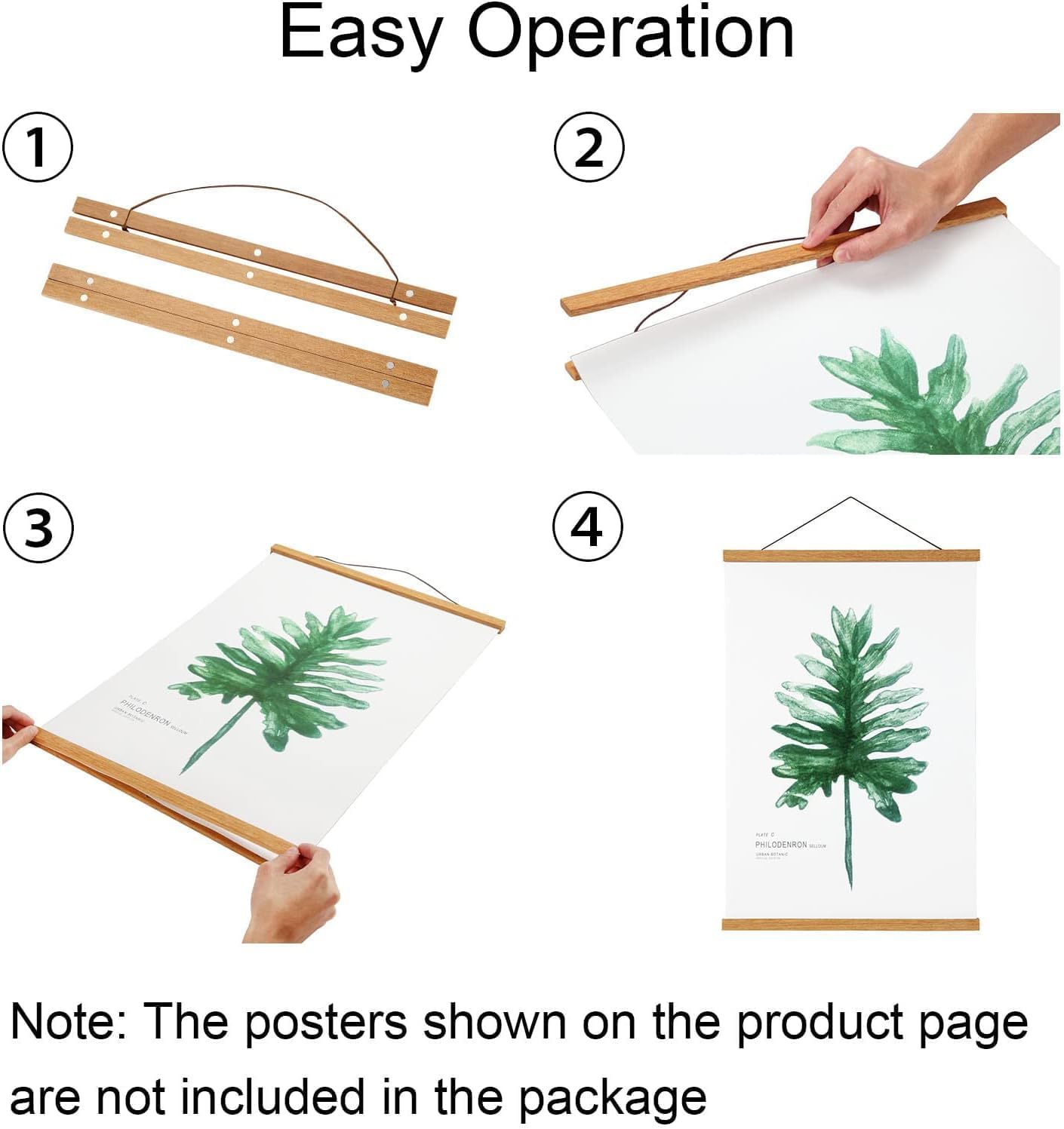 FALAMON Magnetic Poster Hanger Frame, 44x18 44x26 44x34 Teak Wood Magnet Poster Frame for Posters, Prints, Photos, Pictures, Maps, Scrolls, and Canvas Artwork