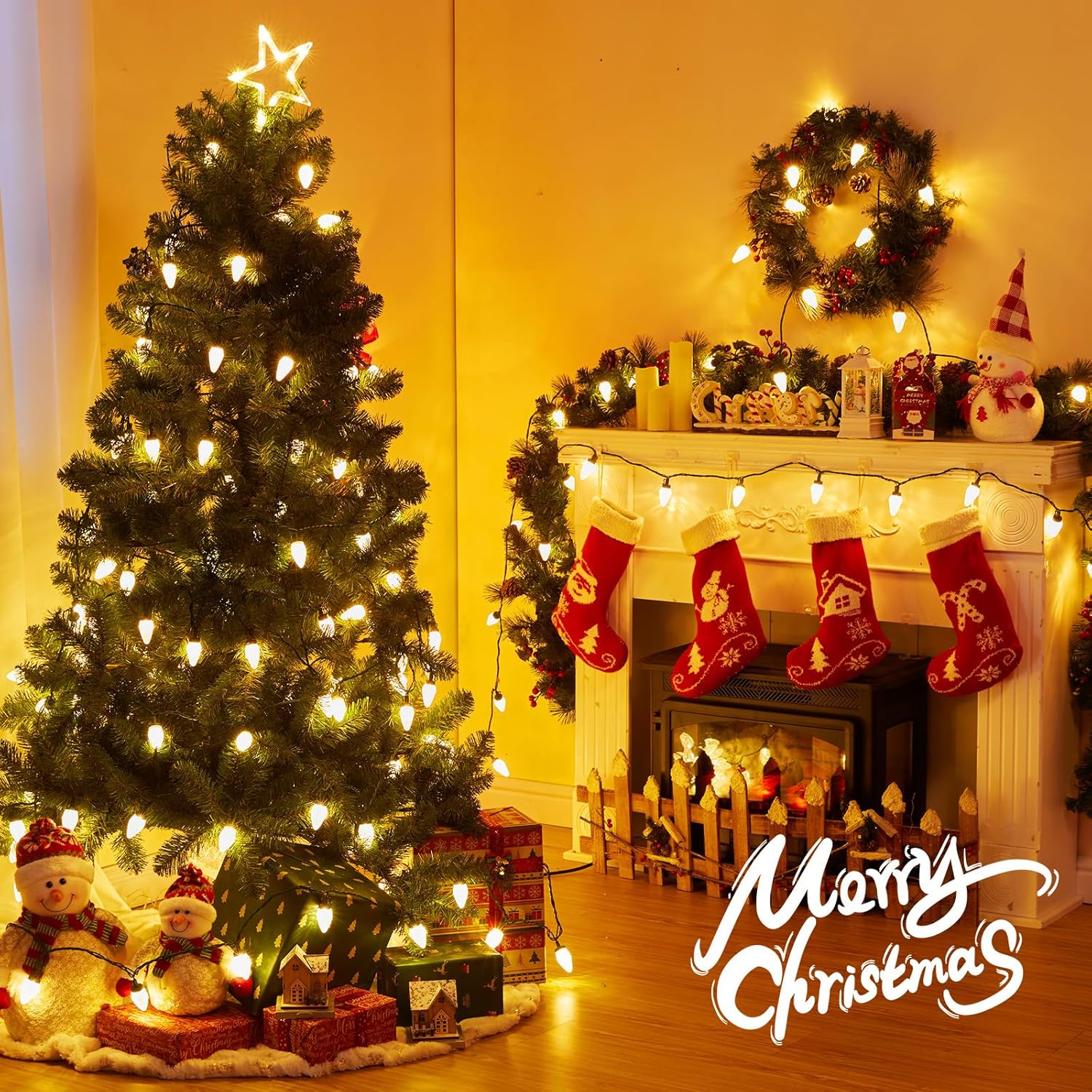 - Perfect Christmas Decorations: The exquisite C9 Christmas tree lights is suitable for outdoor, indoor, Xmas, holiday decorations, garden, yard, lawn, home, patio, bedroom, Christmas tree, wedding, thanksgiving day, and Holiday decoration. Hang these versatile lights anywhere with built-in clips and hooks on each bulb socket.