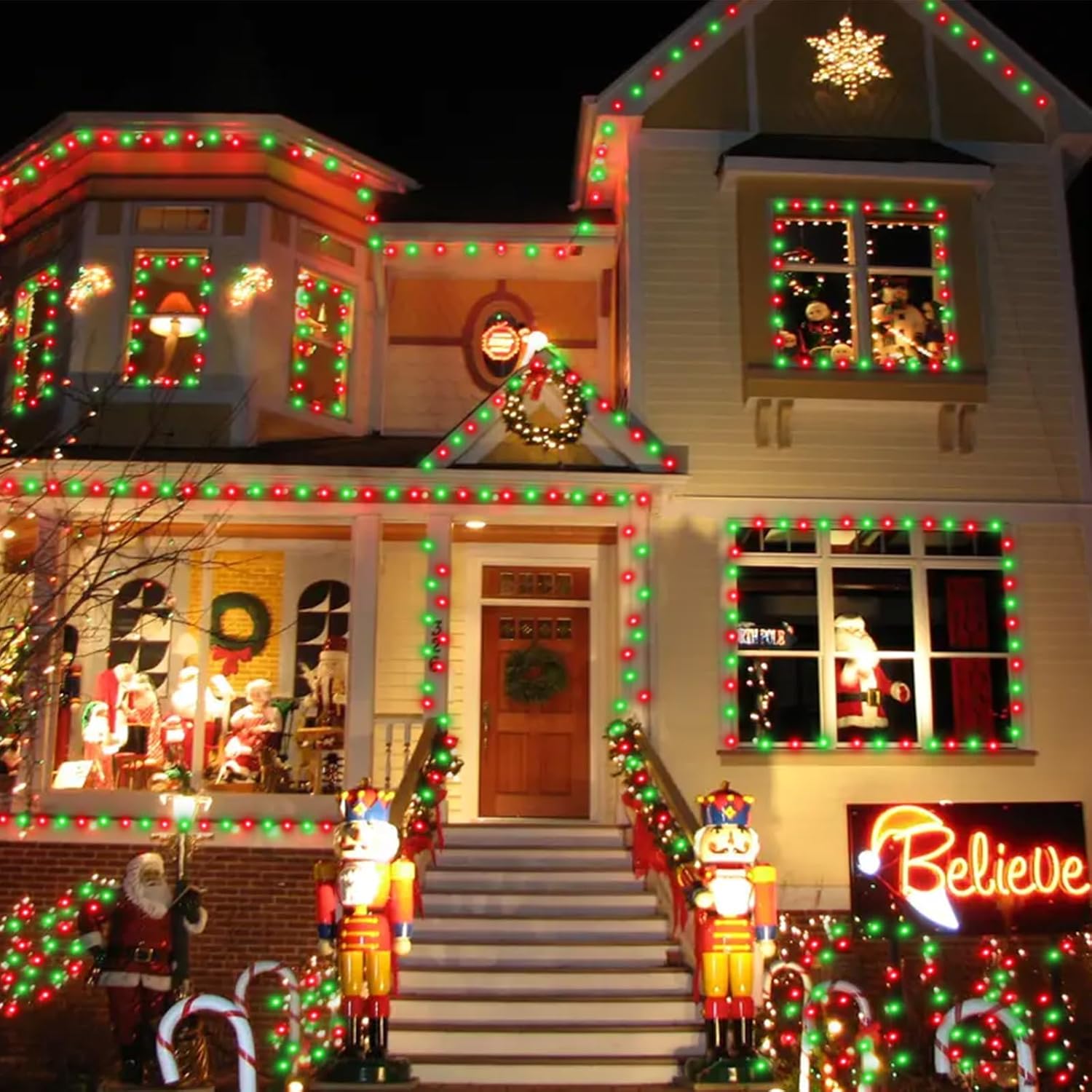 - Solar Powered: No outlet, no running extension cords, no maintenance! Energy-saving and environmentally friendly, charging quickly in direct sunlight. But not as bright as AC powered thick tube rope lights.