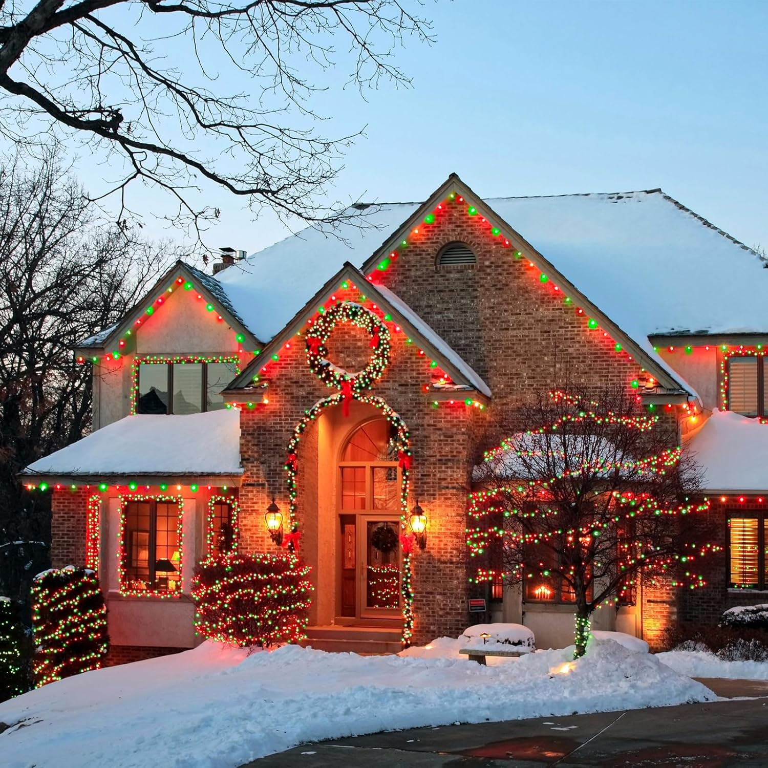 YEGUO Solar Rope Lights Outdoor Waterproof LED, 2 Pack Each 33ft 100 LED String Lights Outdoor, Red and Green Faity Lights in Clear Thin Tube