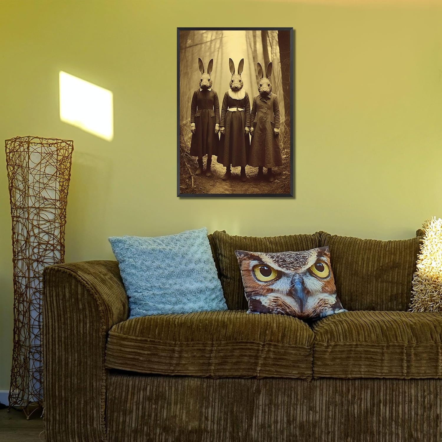 - transform your space into a mystical haven with our rabbit cult of the forest art poster print,the artwork size is 24x36inch aluminum frame,first wrap the wooden frame with canvas and then embed it in the aluminum frame.